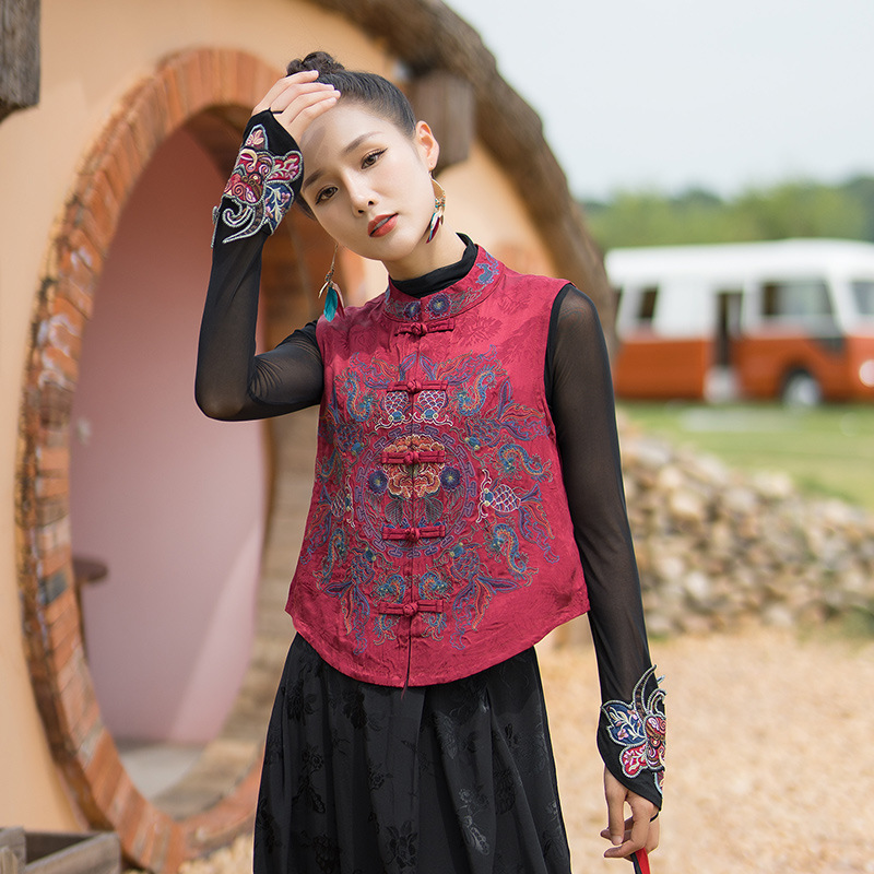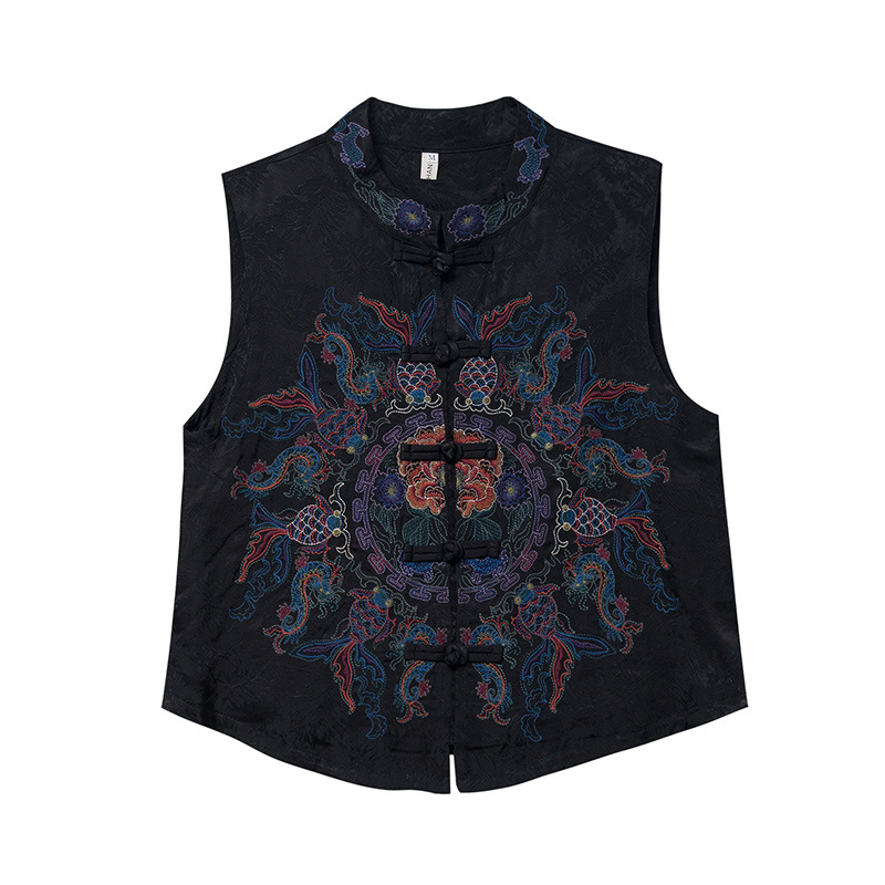 | nameOriginal | Ethnic Style Women's Vest Women's New Stand Collar Jacquard Satin Heavy Embroidered Flower Slimming Vest Jacket |