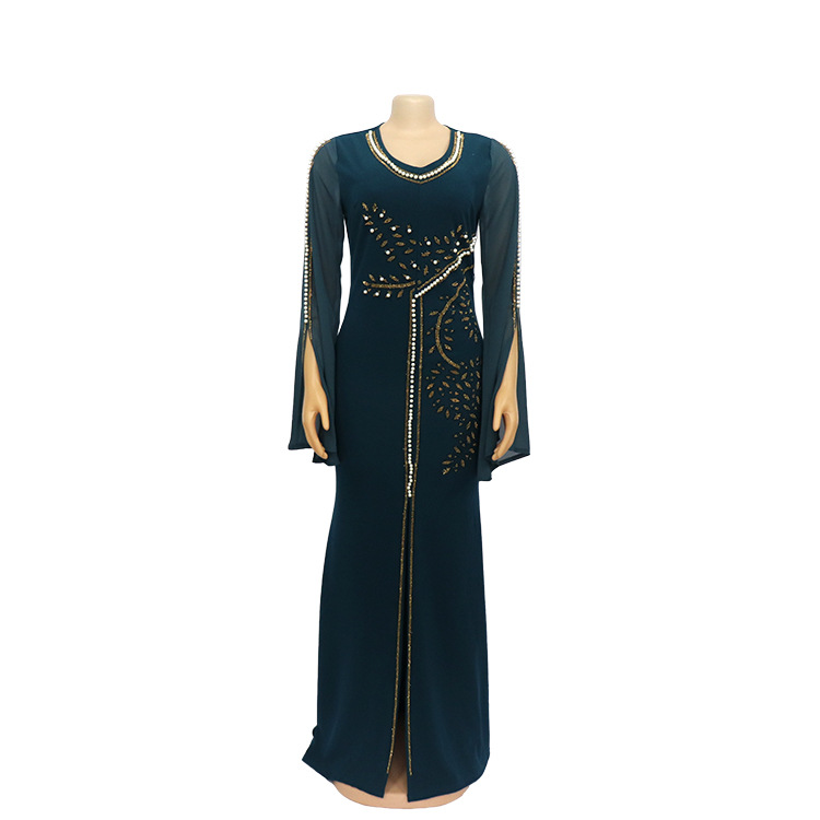 | nameOriginal | Europe, America and Africa Dress Elegant Trumpet Sleeve Fashion Quality Heavy Industry Hot Drilling Bag Hip Fishtail Large Size Elastic Long Dress |