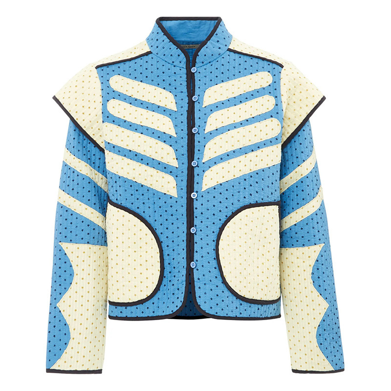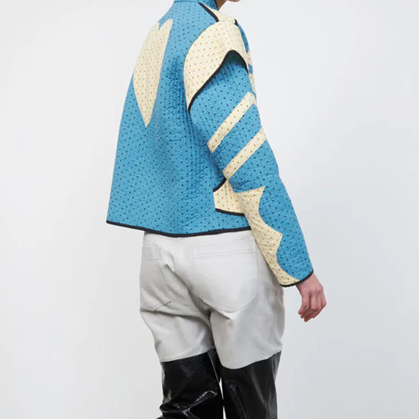 | nameOriginal | Europe and the United States cross-border 2024 autumn new stand collar blue wave dot black and white line jacket temperament commute |