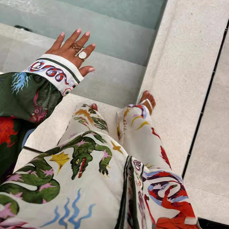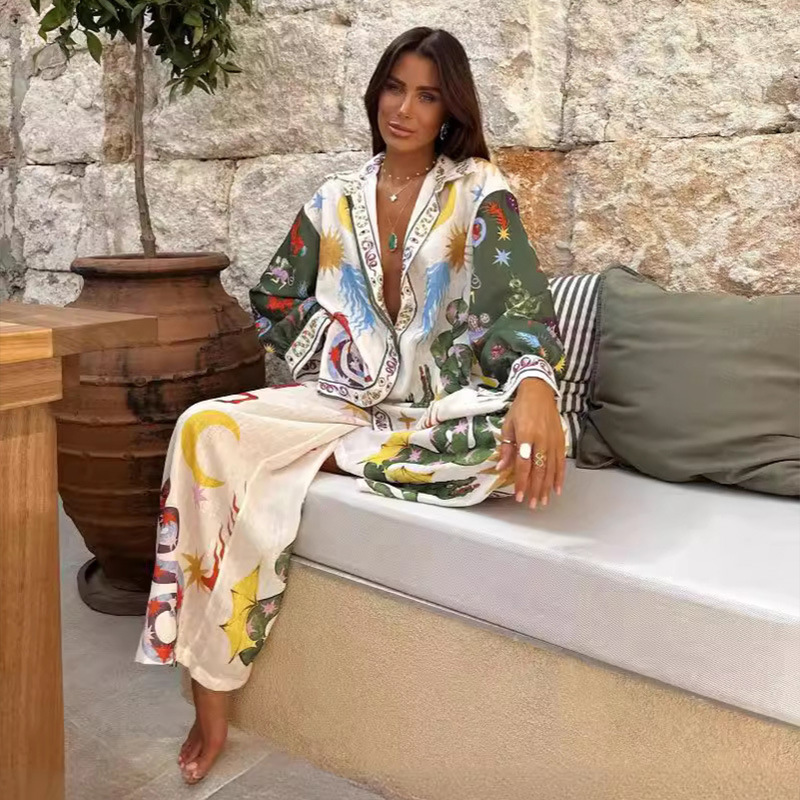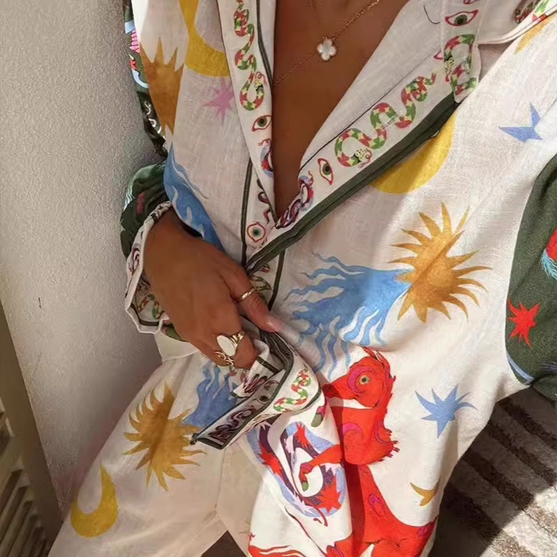 | nameOriginal | Europe and the United States cross-border 2024 new independent station AliExpress fashion personality printed Macaron linen long sleeve shirt suit |