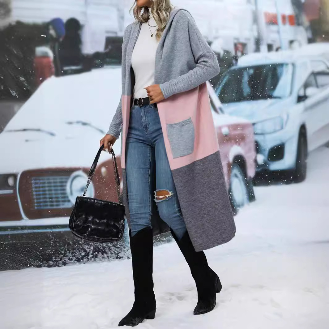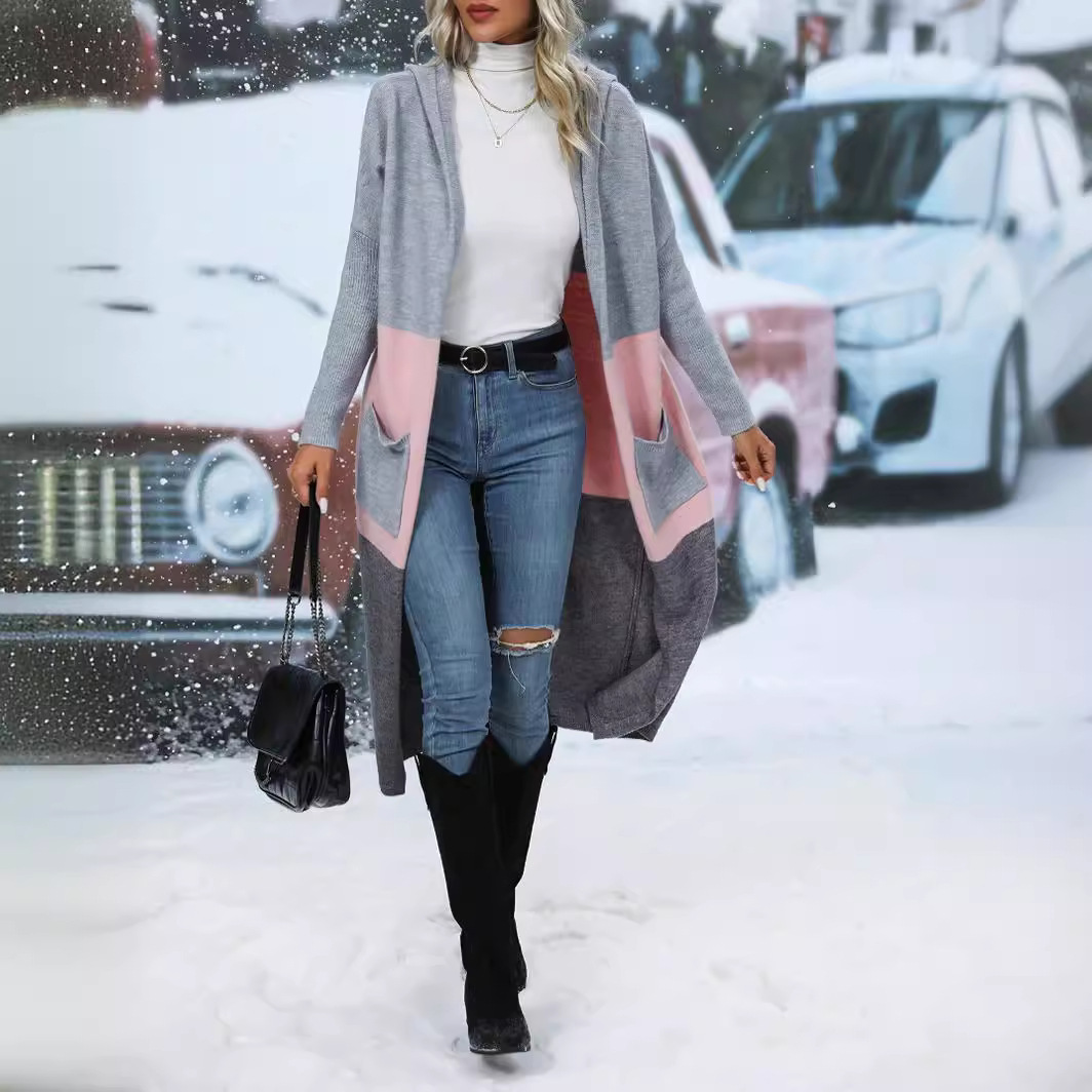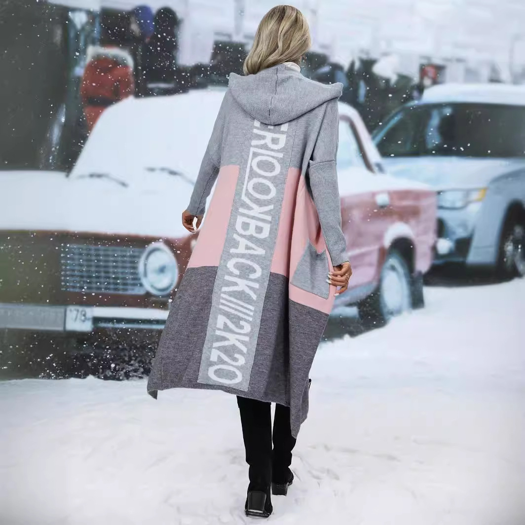 | nameOriginal | Europe and the United States cross-border autumn and winter Amazon sweater coat color matching pocket casual personality letter hooded long cardigan |