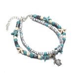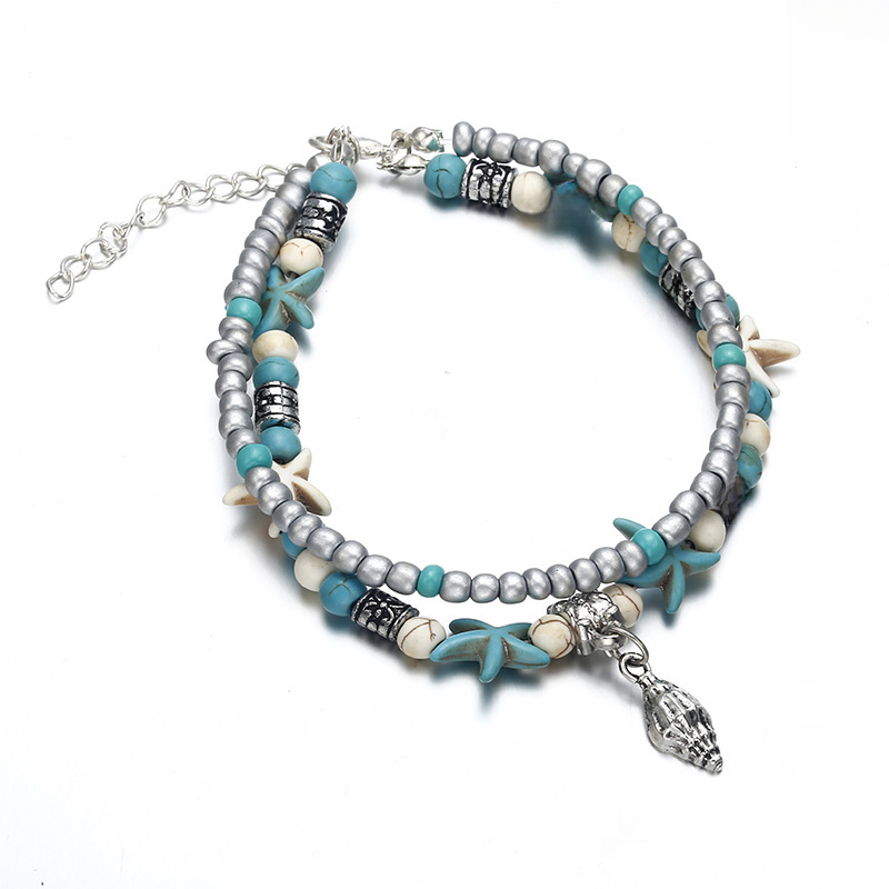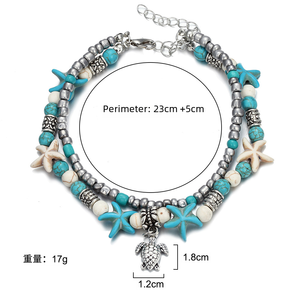 Europe and the United States cross-border Beach retro double-layer anklet conch starfish rice beads yoga beach turtle pendant anklet