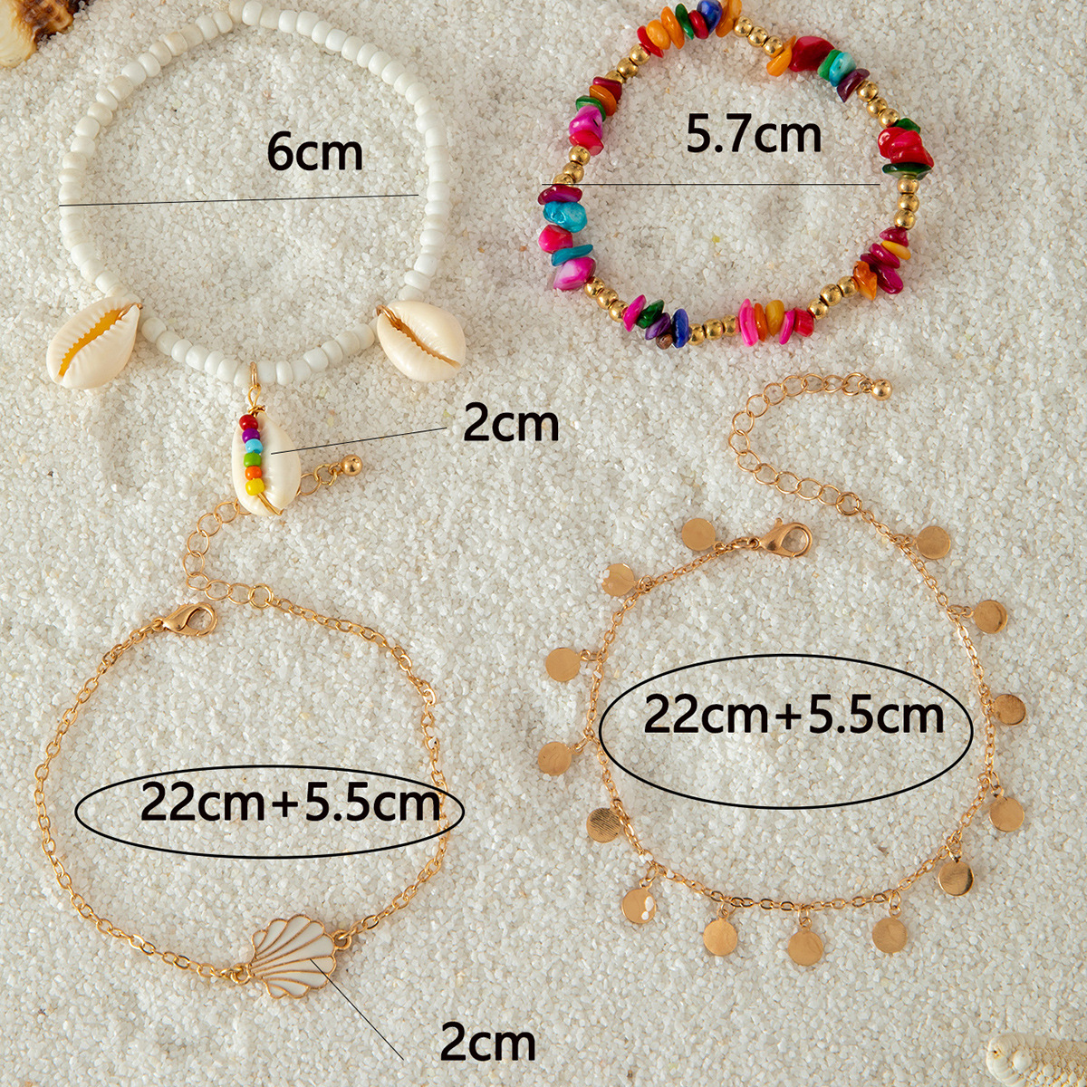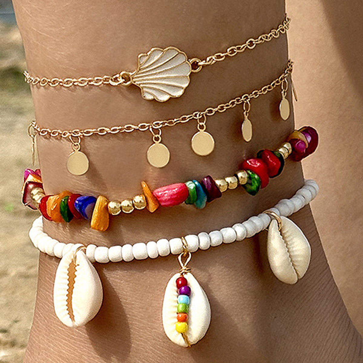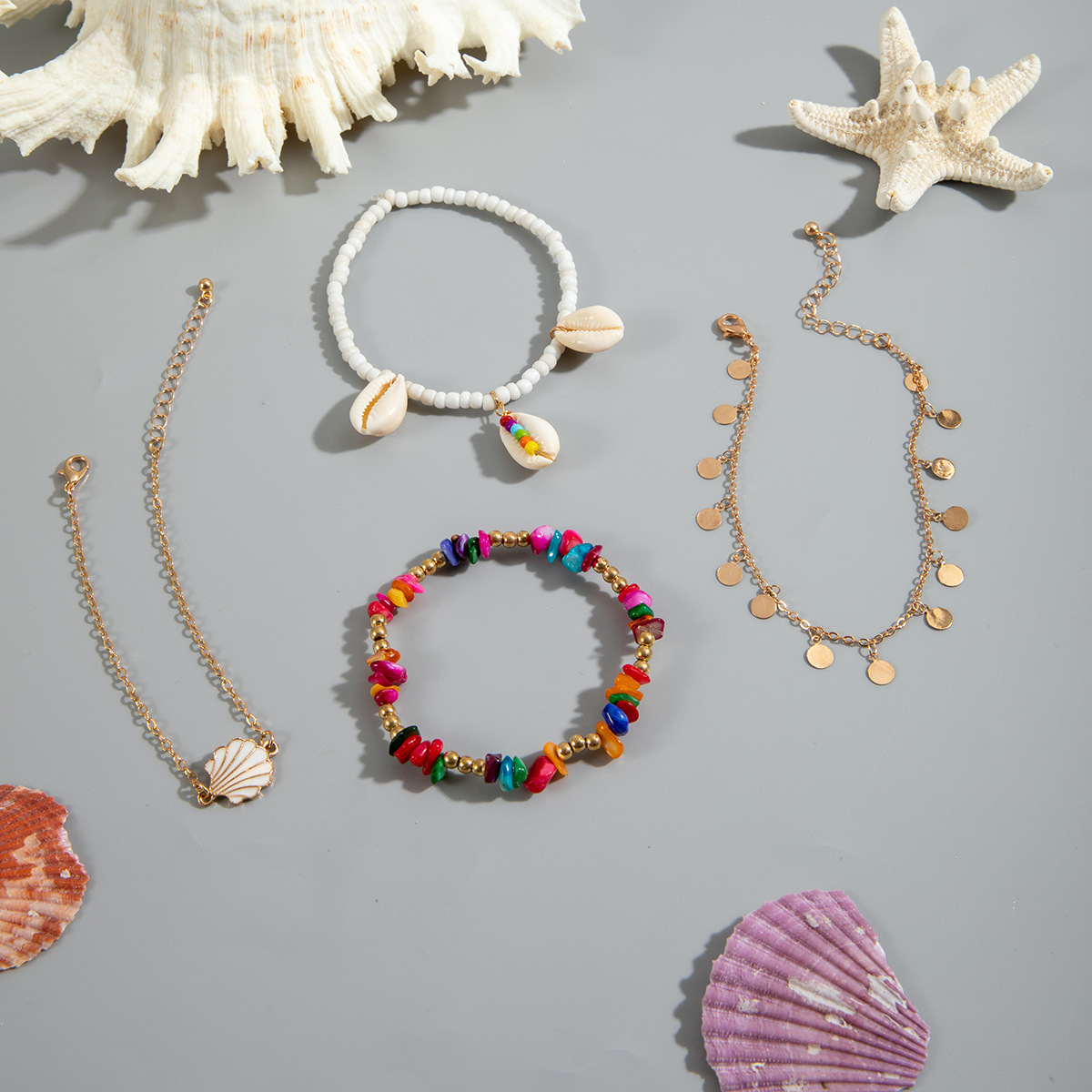 Europe and the United States cross-border Bohemian shell beaded anklet beach wind marine gravel rice bead anklet four-piece set