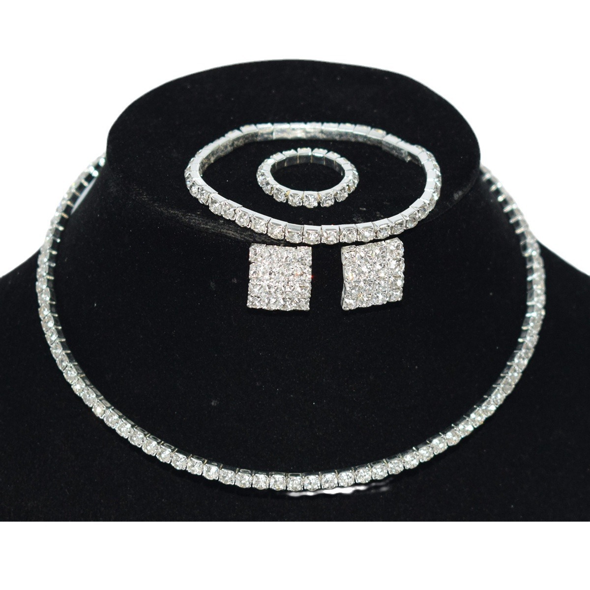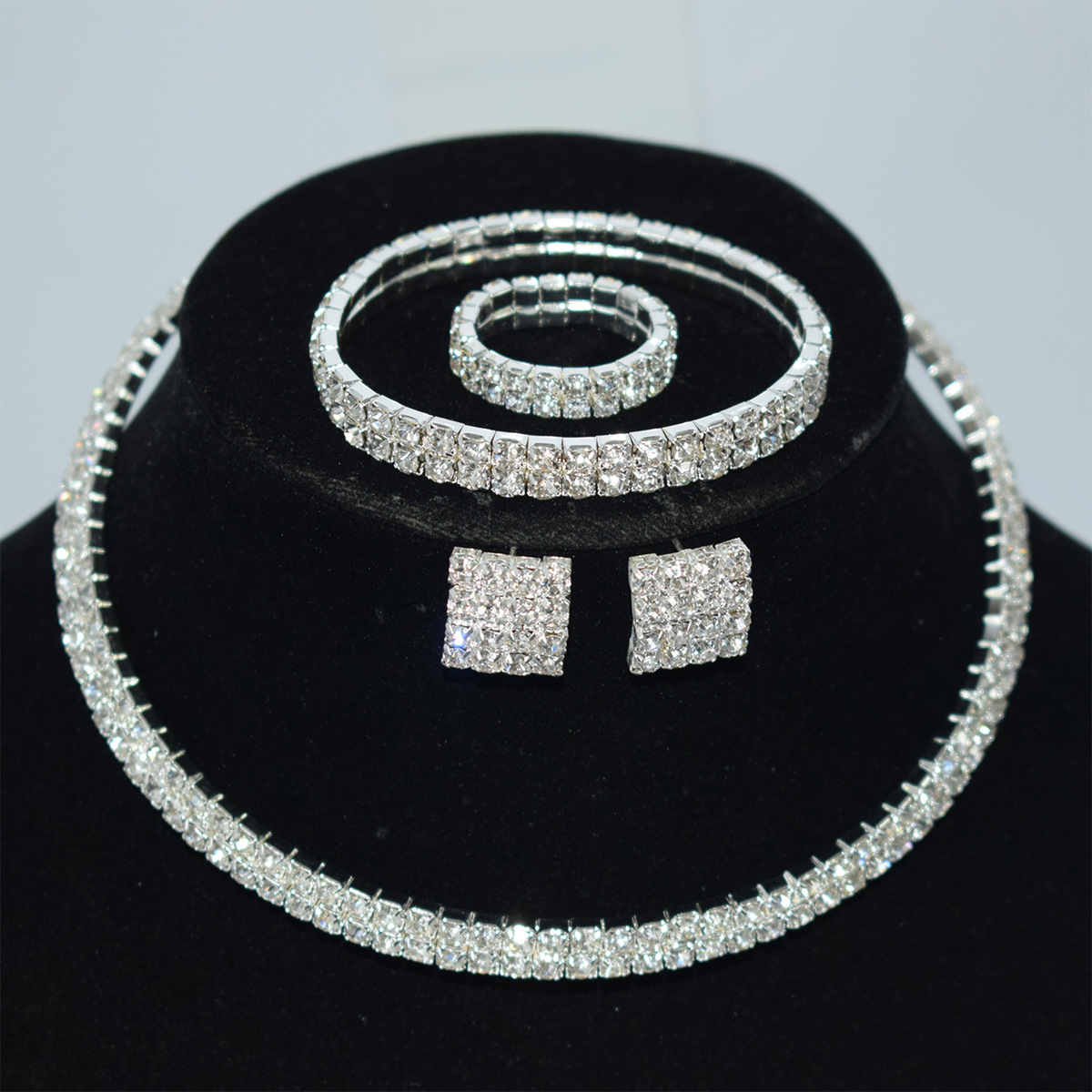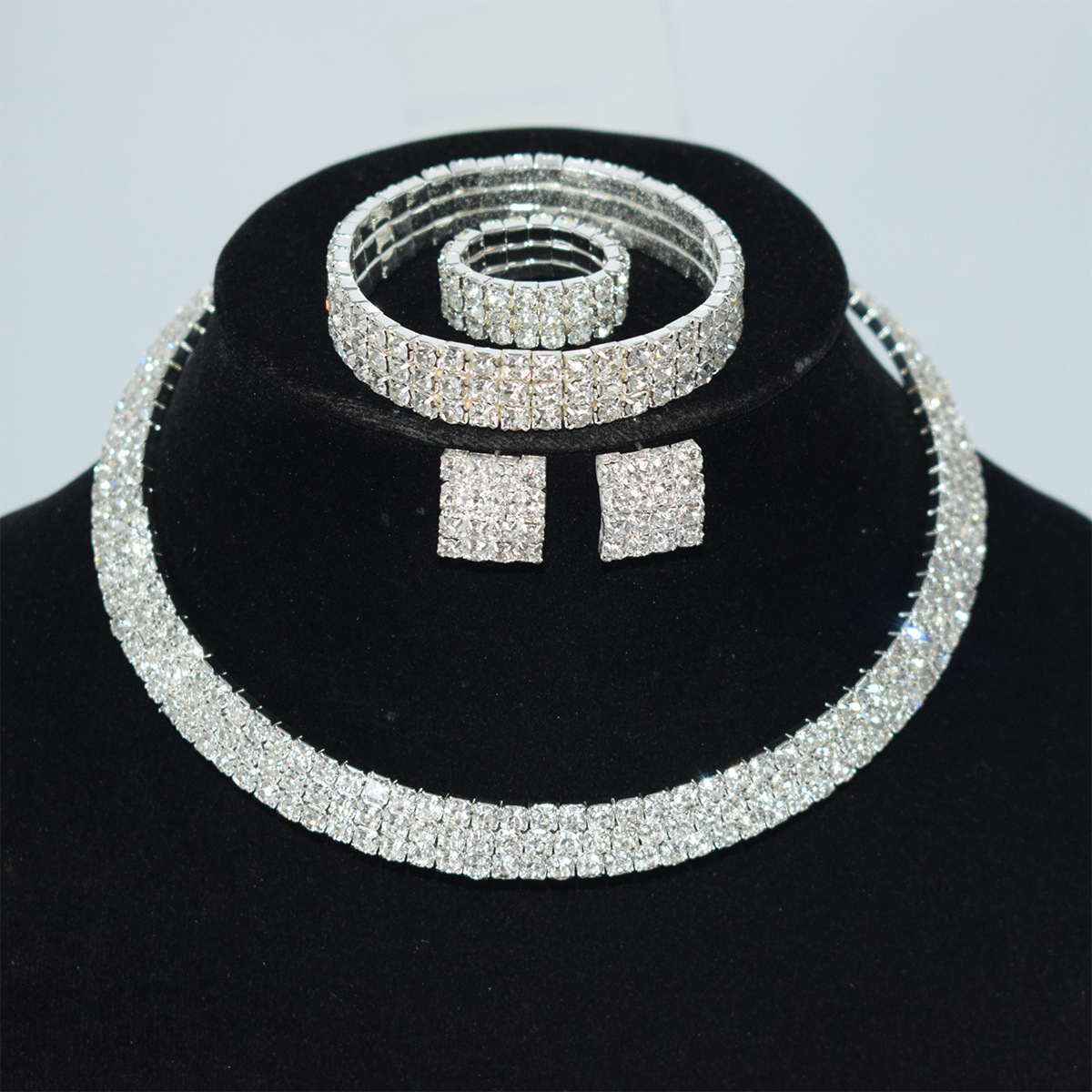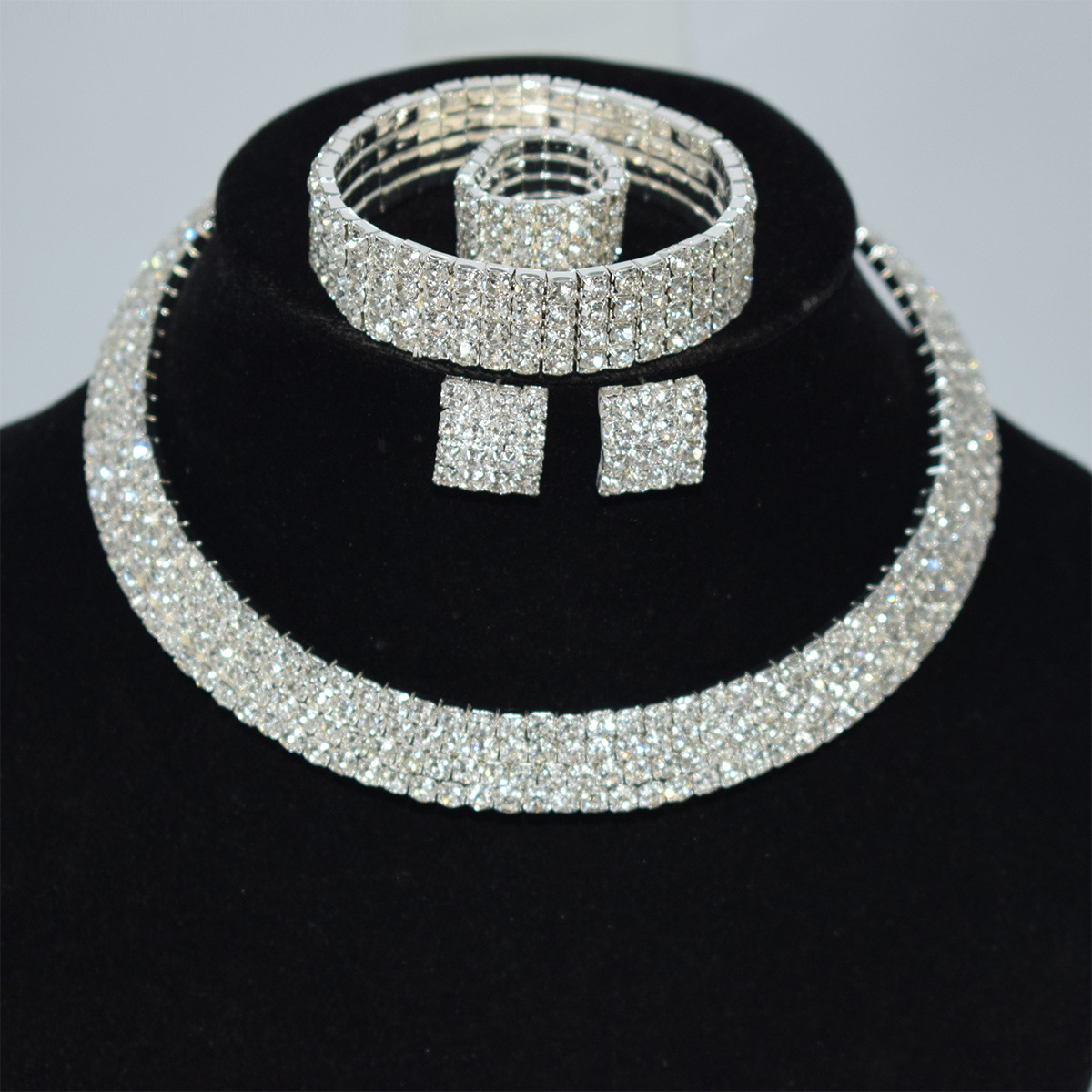 | nameOriginal | Europe and the United States cross-border diamond necklace earrings ring bracelet four-piece Water steel wire Diamond exaggerated collar bride set |
