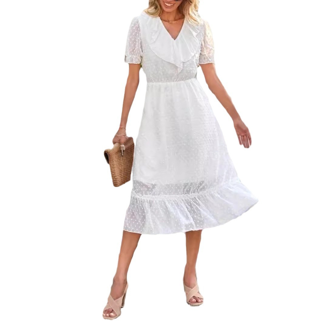| nameOriginal | Europe and the United States cross-border foreign trade women's clothing AliExpress Amazon 2024 summer chiffon V-neck ruffled short sleeve dress |