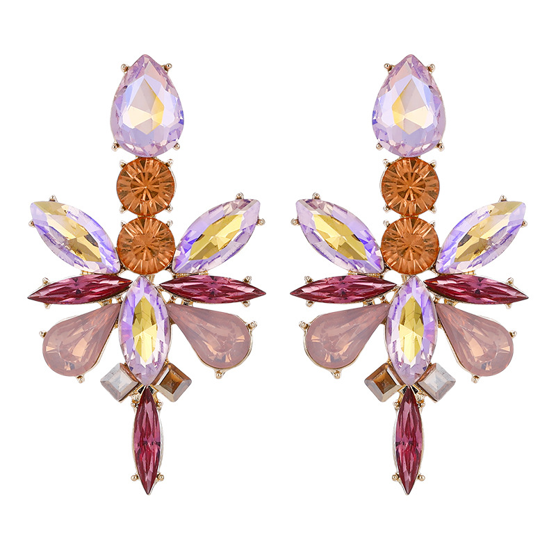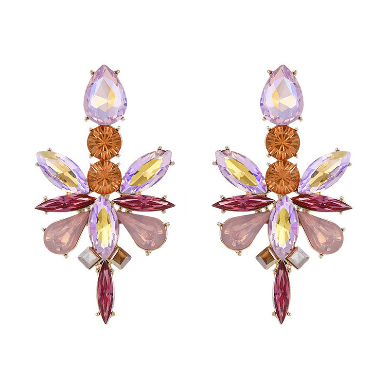 Europe and the United States cross-border fresh sweet geometric large color crystal diamond earrings women’s Joker temperament earrings wholesale hot sale