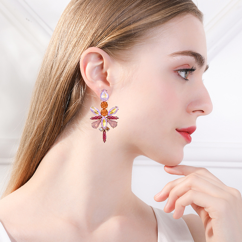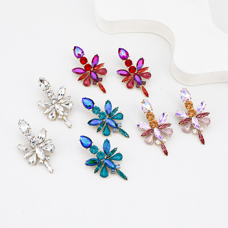 Europe and the United States cross-border fresh sweet geometric large color crystal diamond earrings women's Joker temperament earrings wholesale hot sale