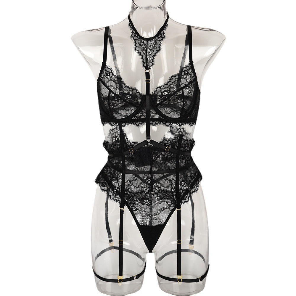 Europe and the United States cross-border fun three-piece set Amazon hot 2022 summer lace eyelash lace stitching with hanging neck foot ring