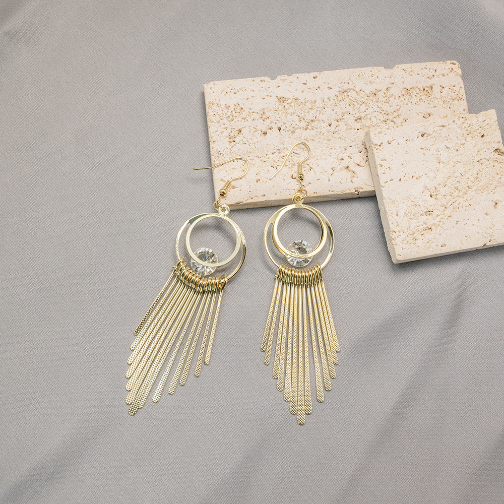 | nameOriginal | Europe and the United States cross-border geometric round hollow earrings niche personality design long tassel pendant earrings wholesale |