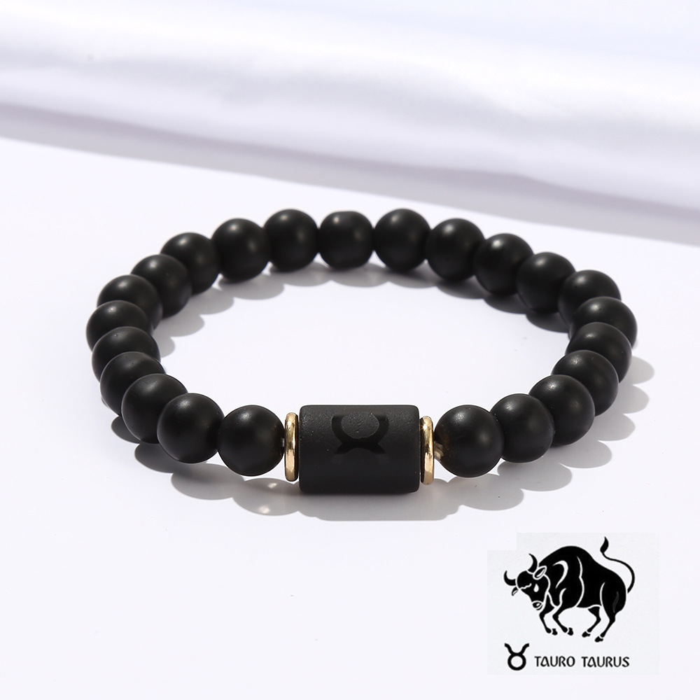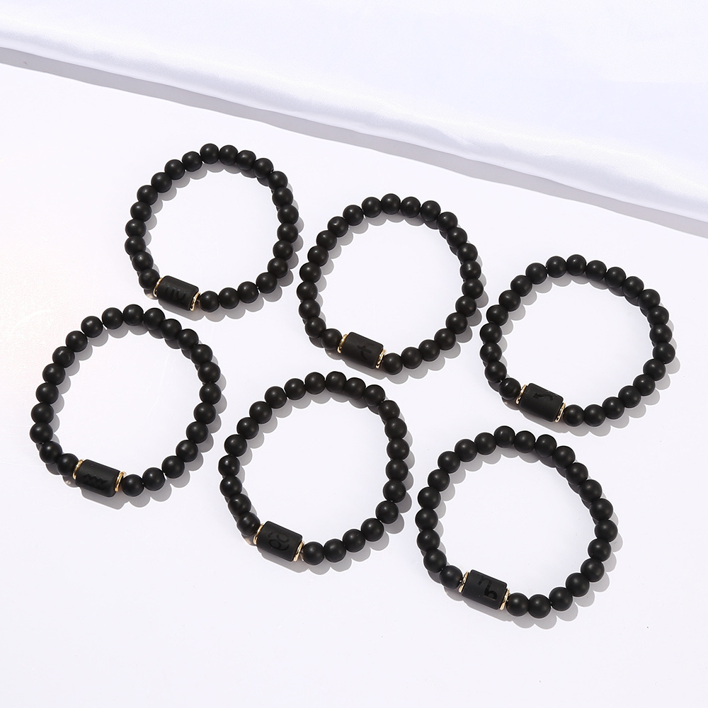 | nameOriginal | Europe and the United States cross-border hot elastic rope twelve constellations beaded black frosted black agate bracelet personality couple bracelet |