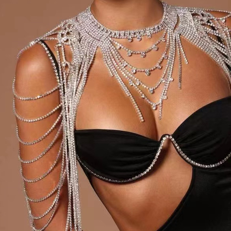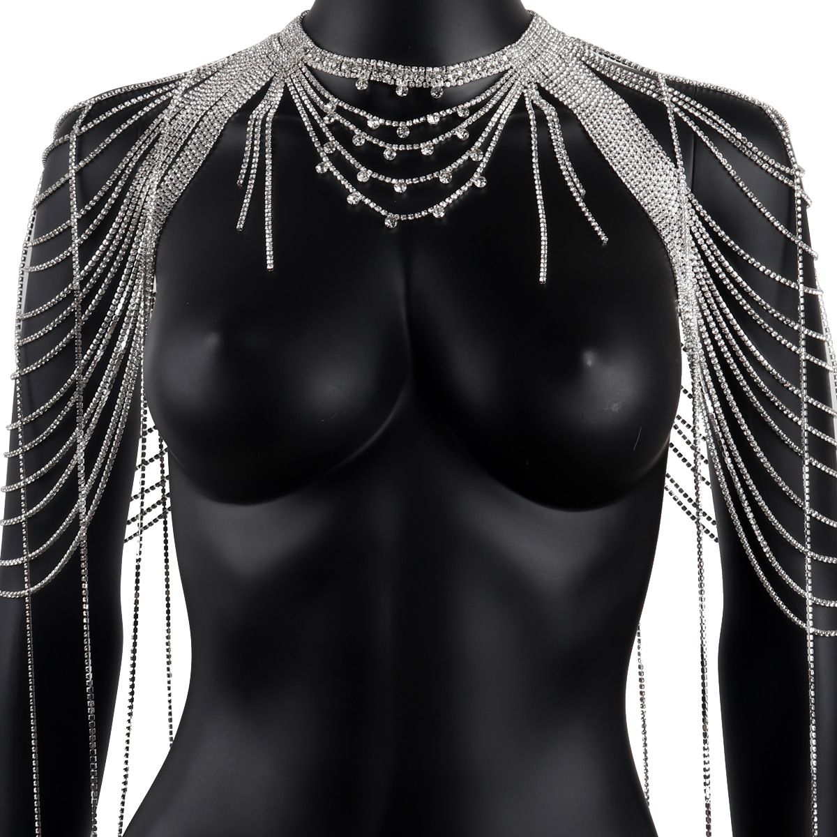 Europe and the United States cross-border hot rhinestone body chain sexy trend multi-layer tassel shoulder chain banquet temperament full diamond accessories