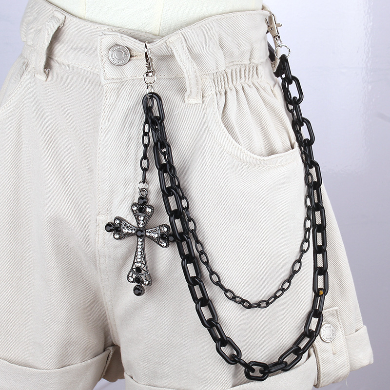 Europe and the United States cross-border jewelry exaggerated variety of guns black pants chain fashion diamond cross spider pendant body chain