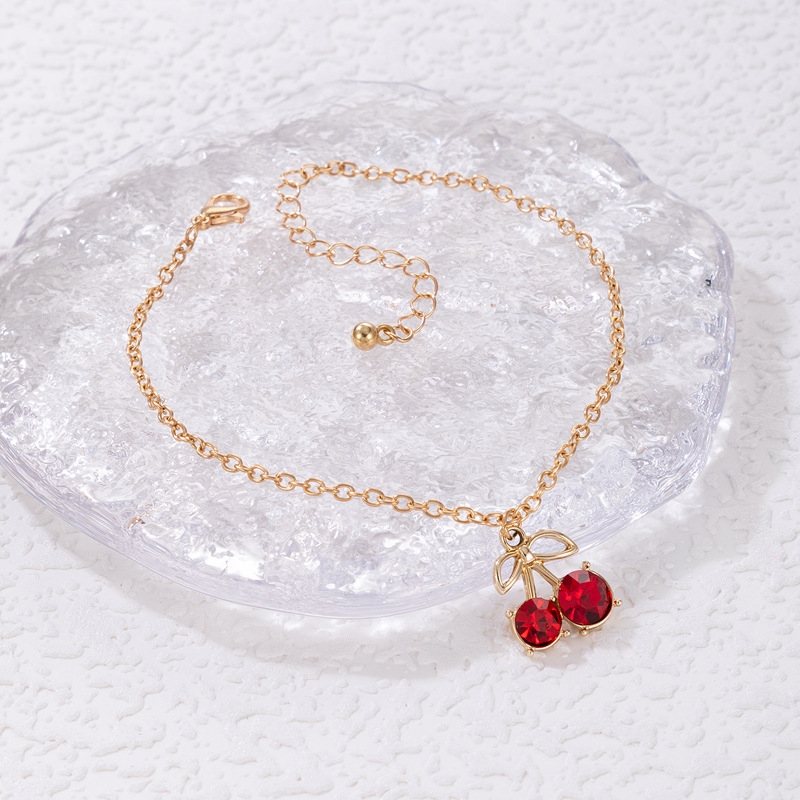 | nameOriginal | Europe and the United States cross-border jewelry imitation ruby inlaid cherry single-layer anklet cute fruit pendant chain foot ornaments |