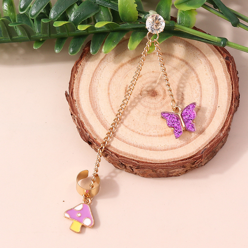 | nameOriginal | Europe and the United States cross-border jewelry ins fresh sweet purple colorful butterfly earrings tassel mushroom ear clip earrings |