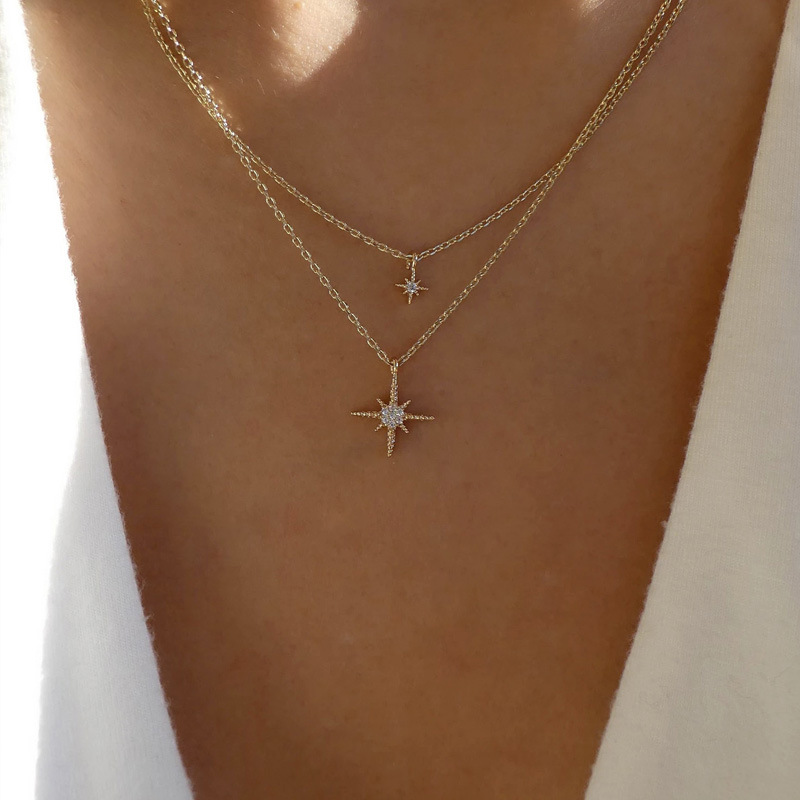 | nameOriginal | Europe and the United States cross-border jewelry personality double crystal pendant necklace socialite Street Fashion necklace women |