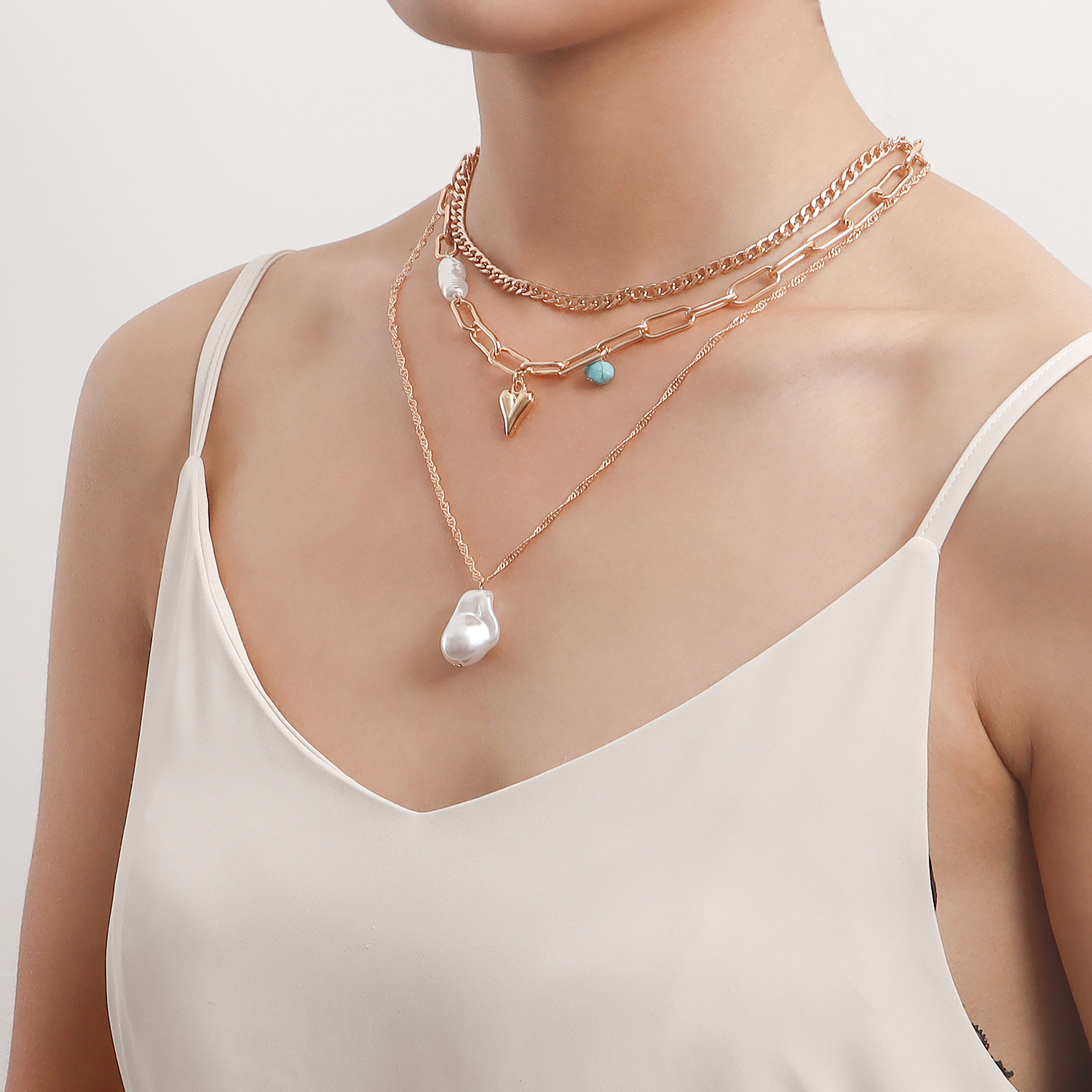| nameOriginal | Europe and the United States cross-border jewelry tide cool multi-layer shaped imitation pearl love pendant necklace female ins cross-border hot selling explosives |
