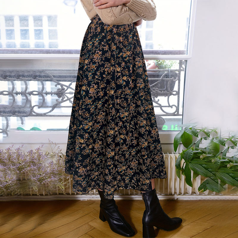 | nameOriginal | Europe and the United States cross-border new elastic waist printed A- line skirt women's commuter elegant floral pleated skirt women's dress |