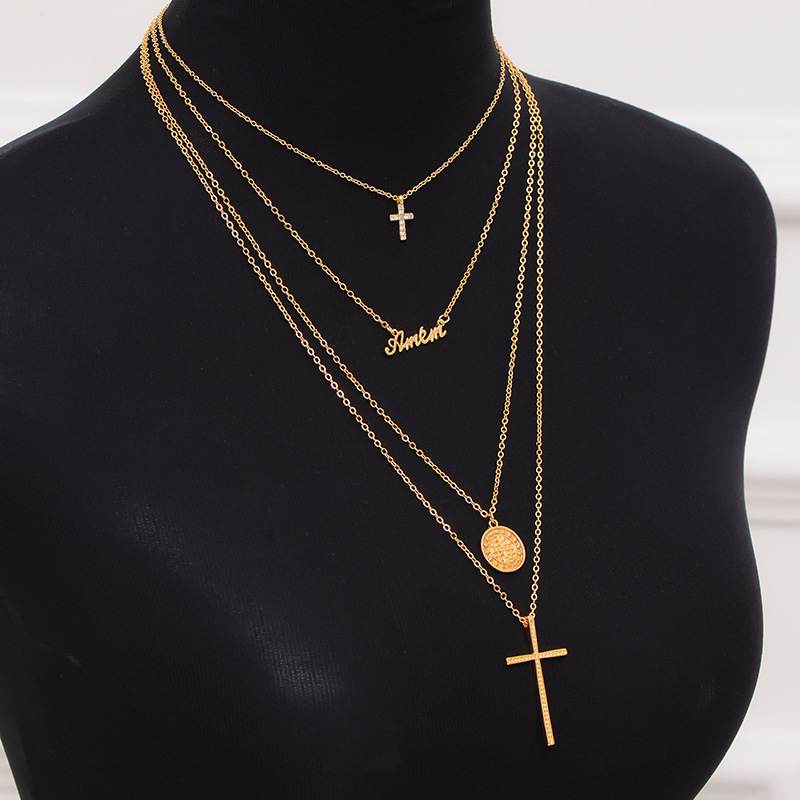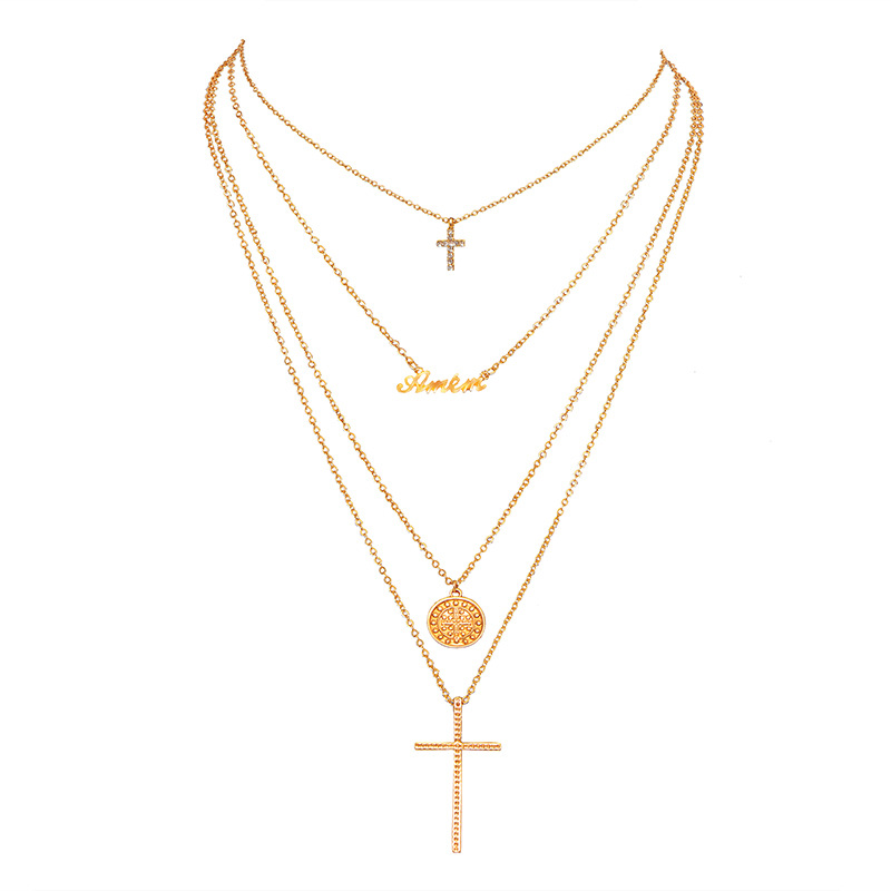 | nameOriginal | Europe and the United States cross-border new fashion multi-layer geometric wafer English diamond cross necklace jewelry selling |