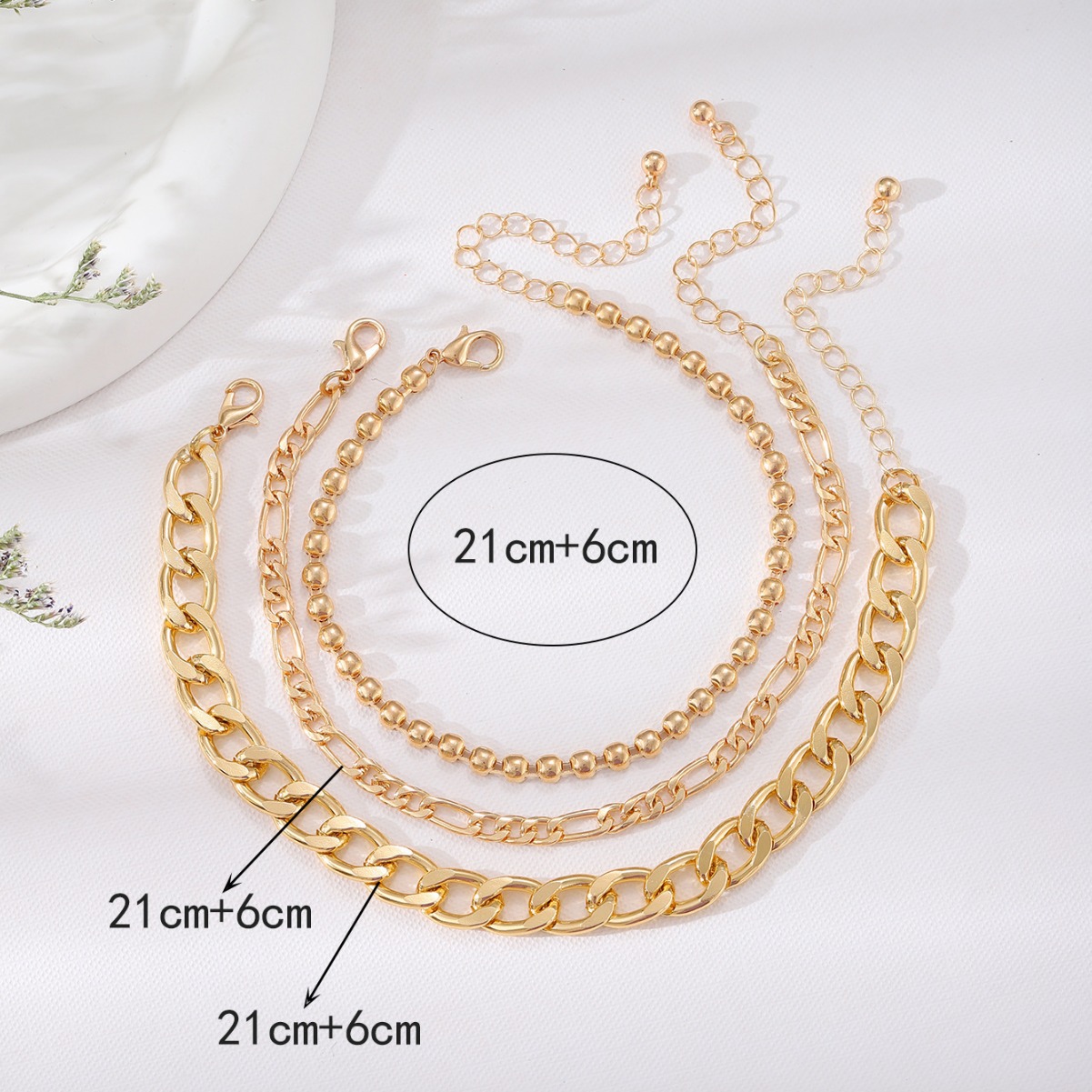 | nameOriginal | Europe and the United States cross-border new simple Joker stainless steel three-layer chain anklet fashion high sense titanium steel foot decoration wholesale |
