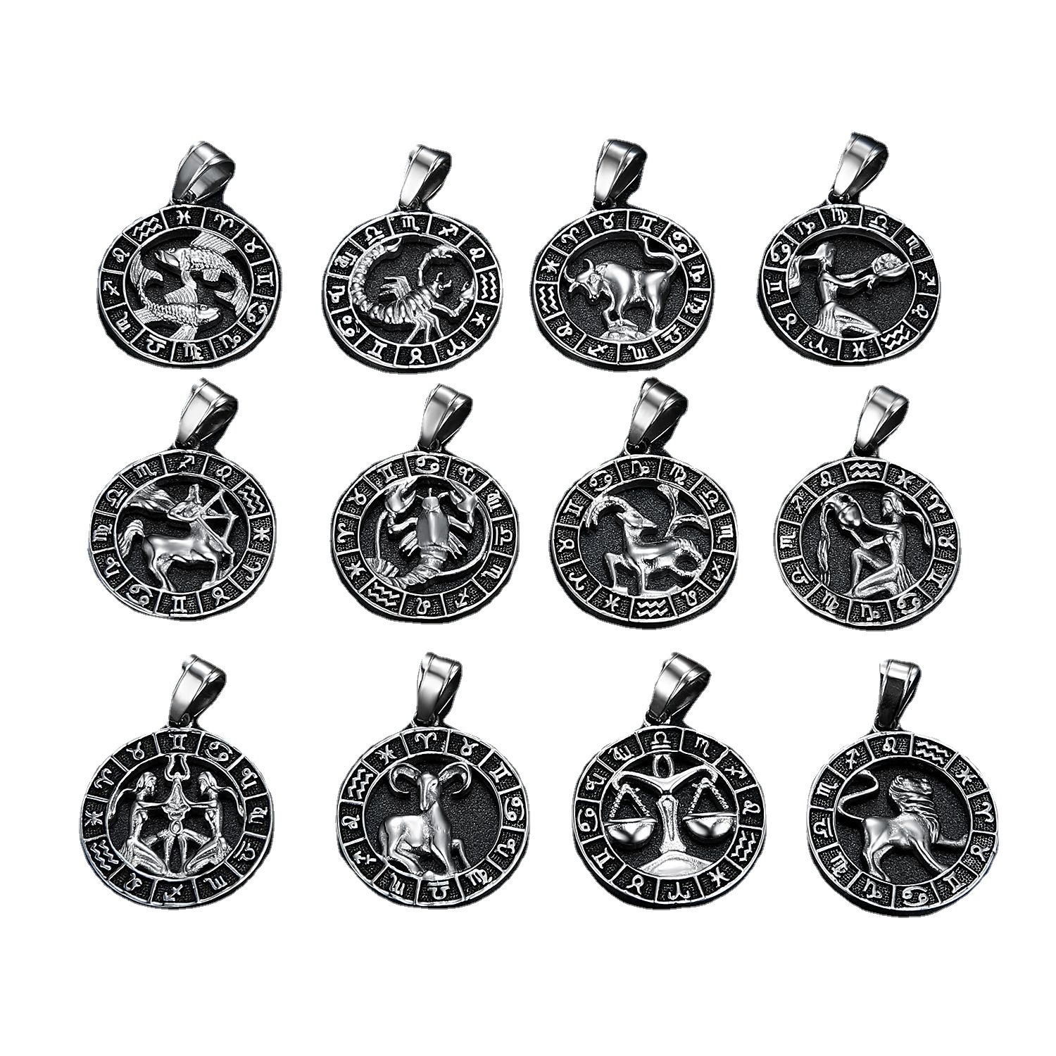 | nameOriginal | Europe and the United States cross-border new titanium steel 18K gold color plating hollow retro 12 constellation relief pendant |