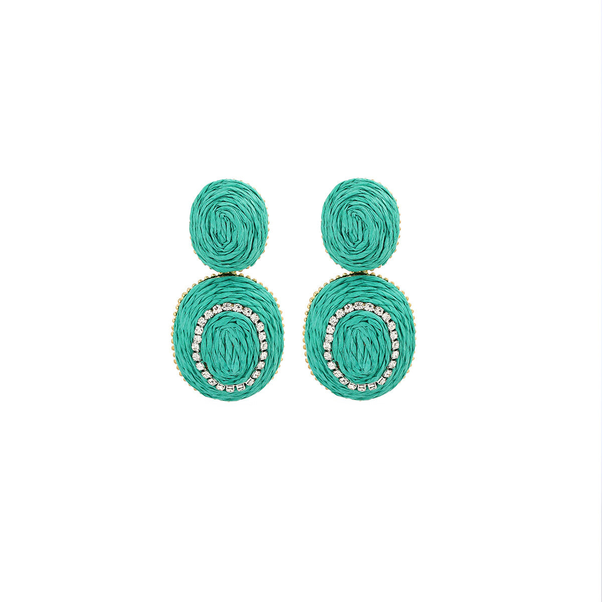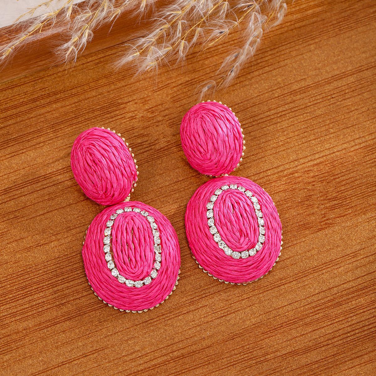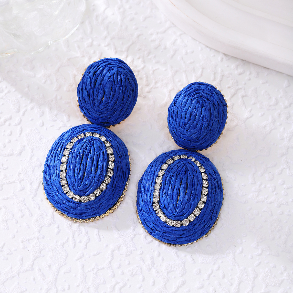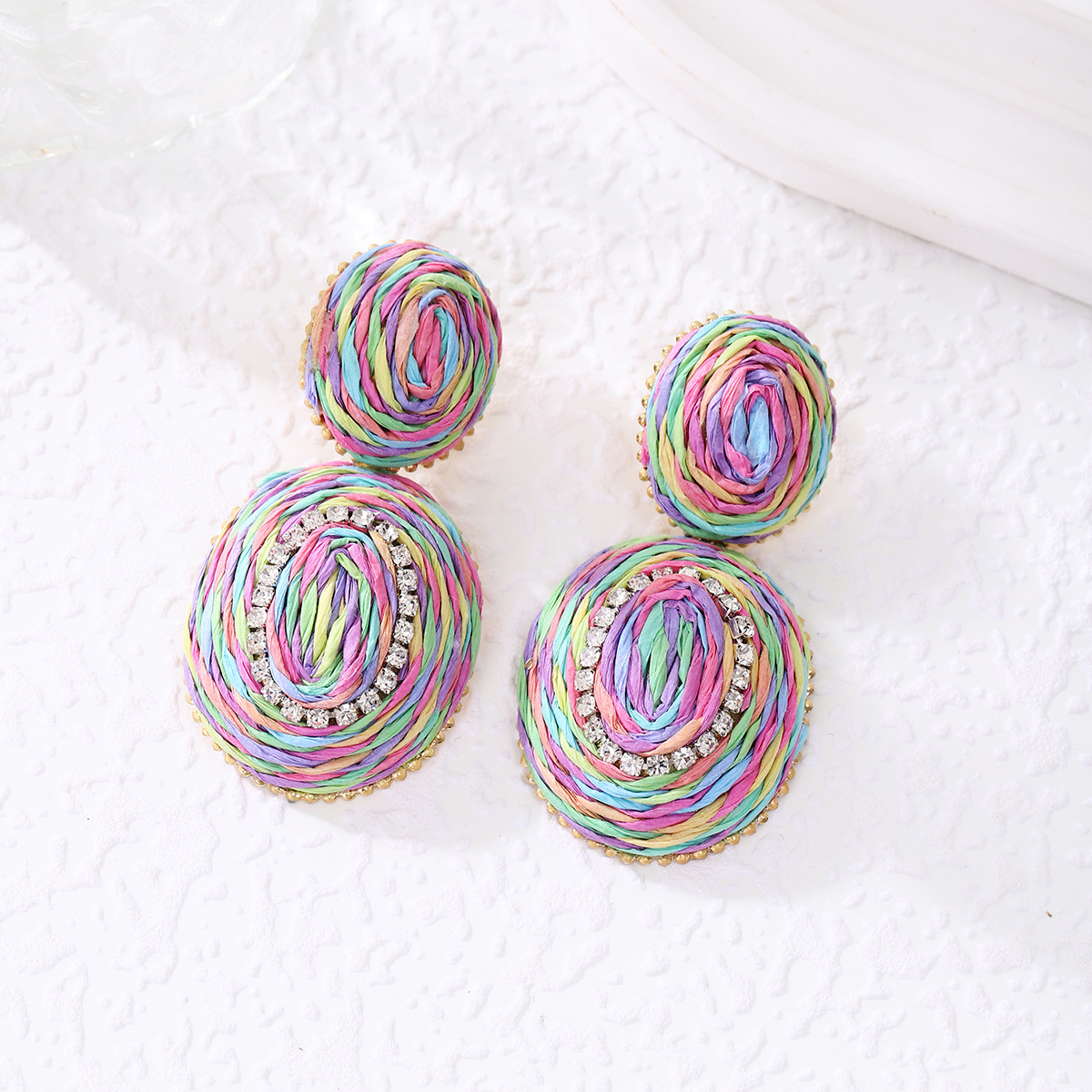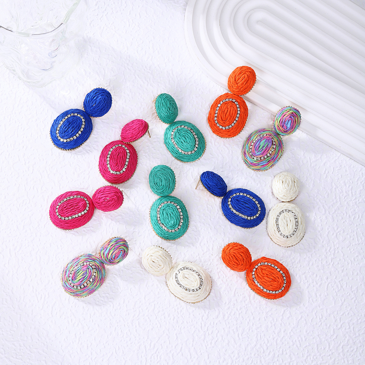 | nameOriginal | Europe and the United States cross-border personality holiday style geometric oval earrings retro dopamine color raffia grass diamond earrings |