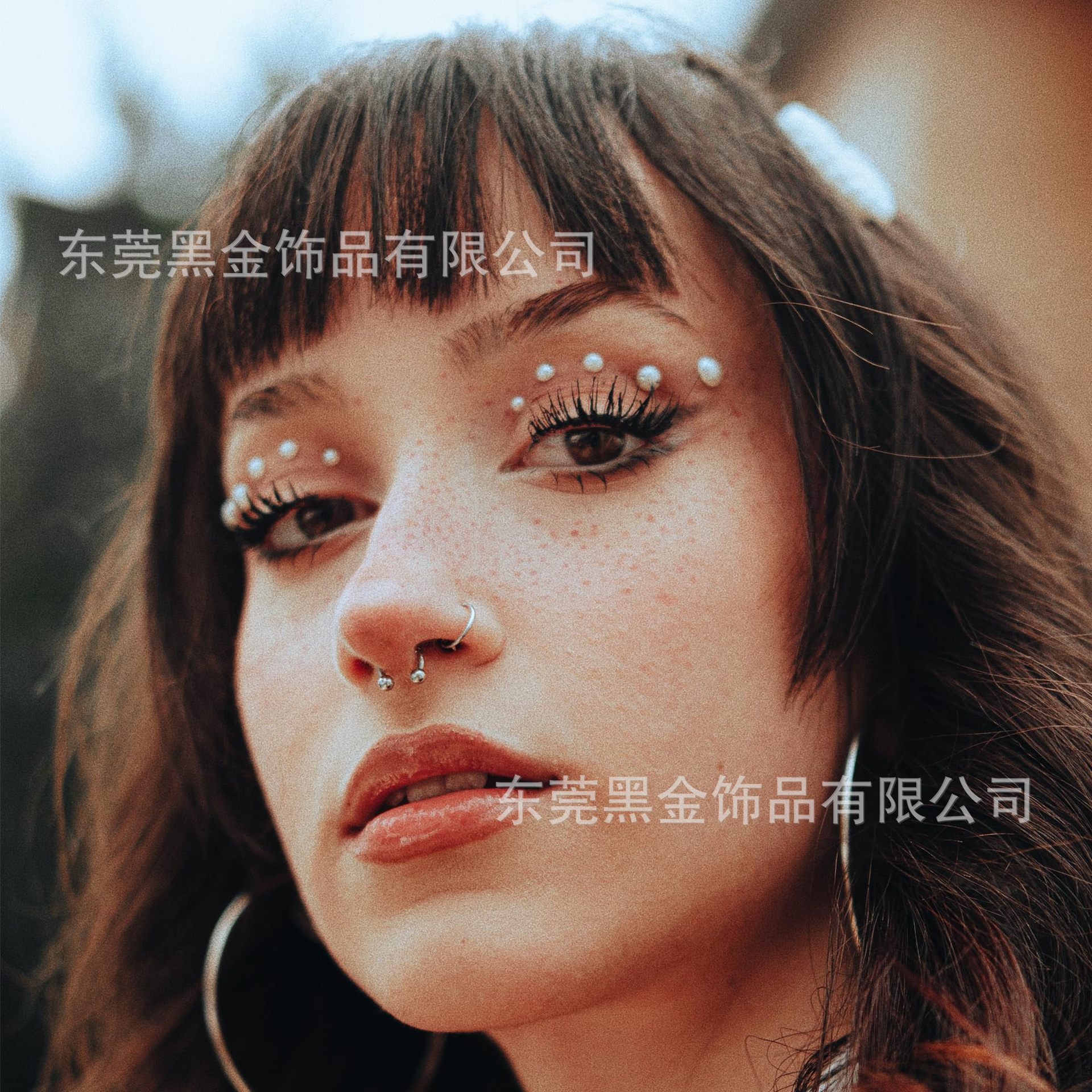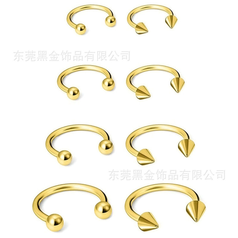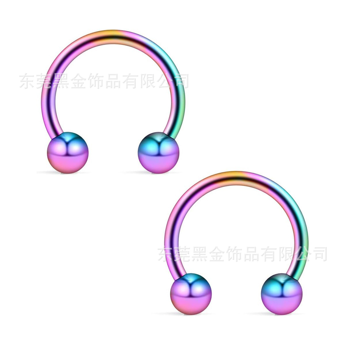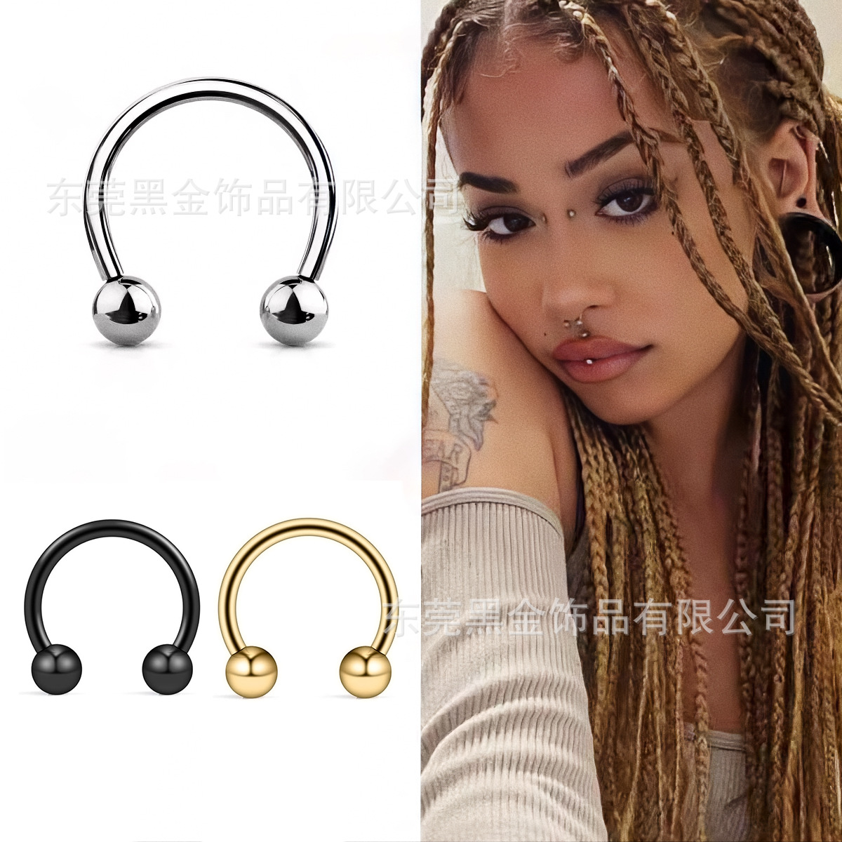 | nameOriginal | Europe and the United States cross-border wholesale perforated puncture nose ornaments beads pointed cone geometric personality color U-shaped horseshoe nail black nose ring |