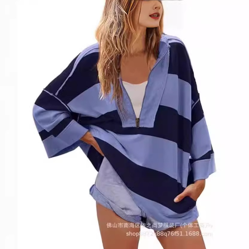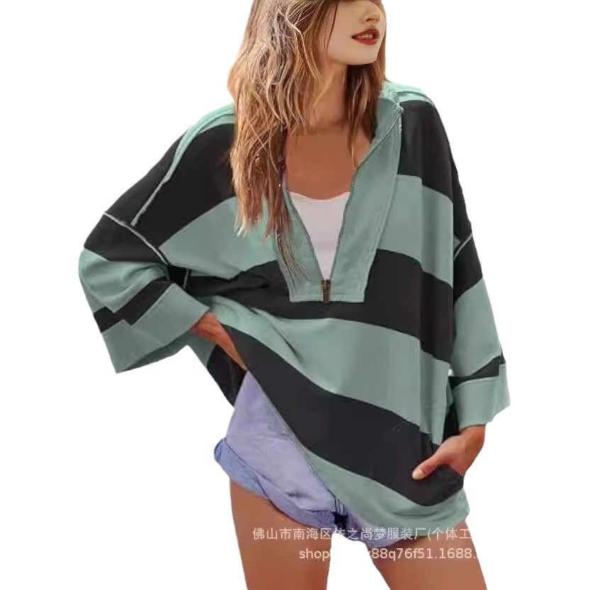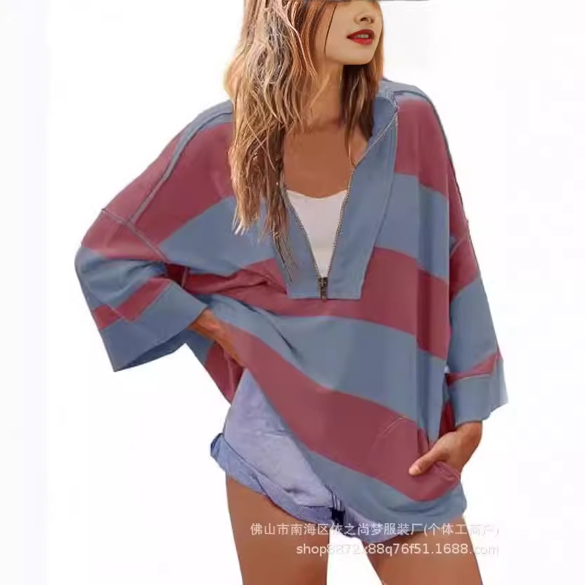 | nameOriginal | Europe and the United States cross-border women's clothing foreign trade 2024 Amazon summer women's striped color matching shirt casual long sleeve polo shirt |