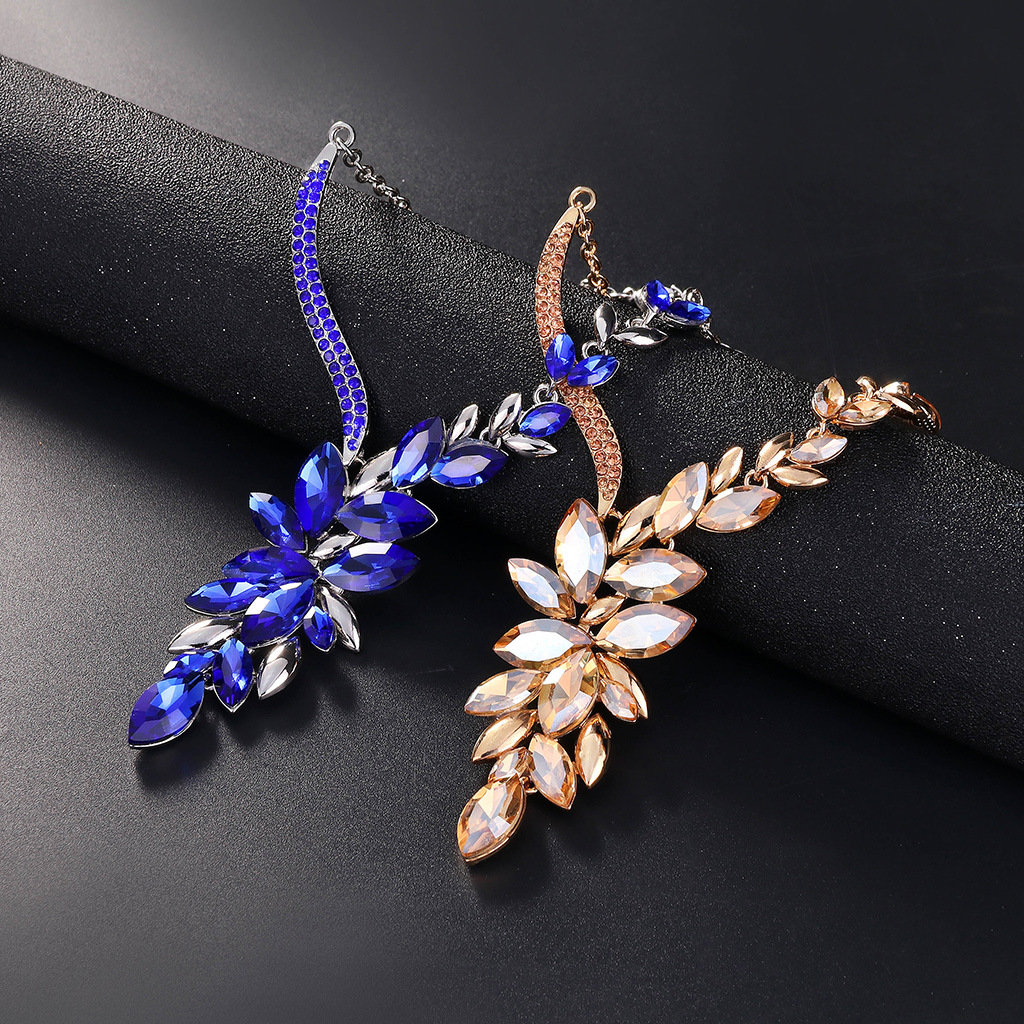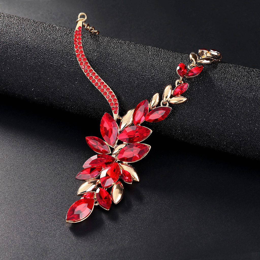 | nameOriginal | Europe and the United States exaggerated bride necklace suit alloy diamond glass color crystal jewelry suit manufacturers in stock |