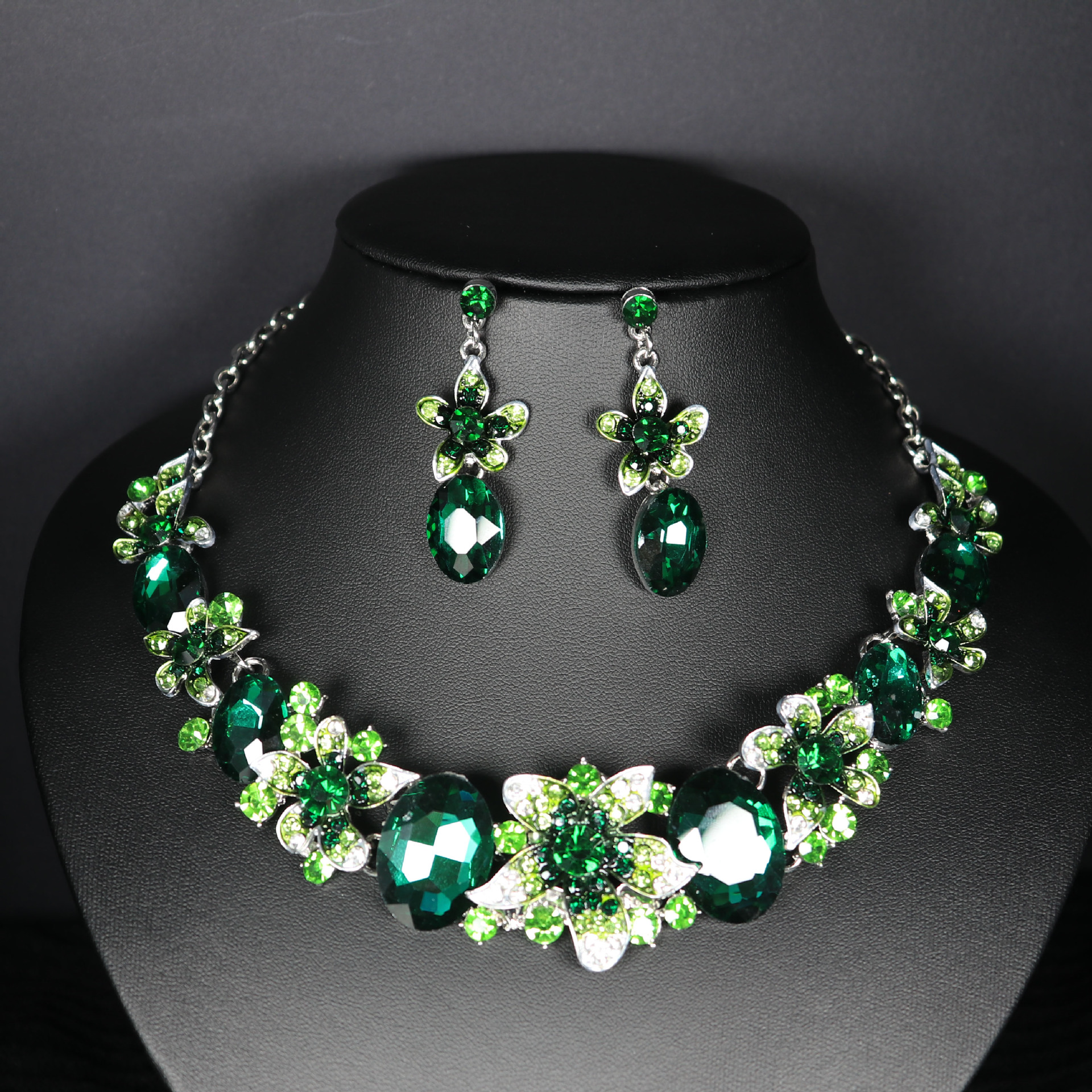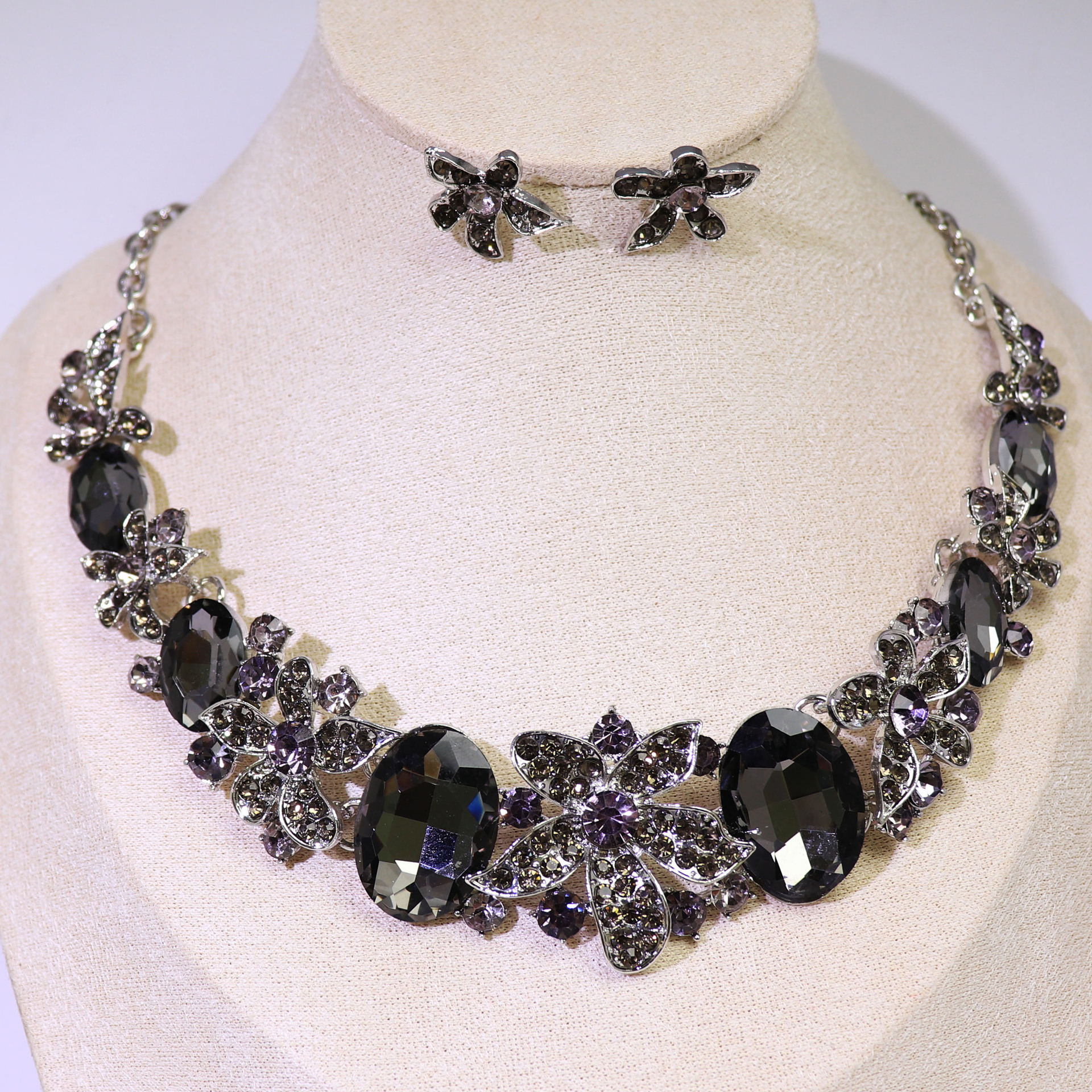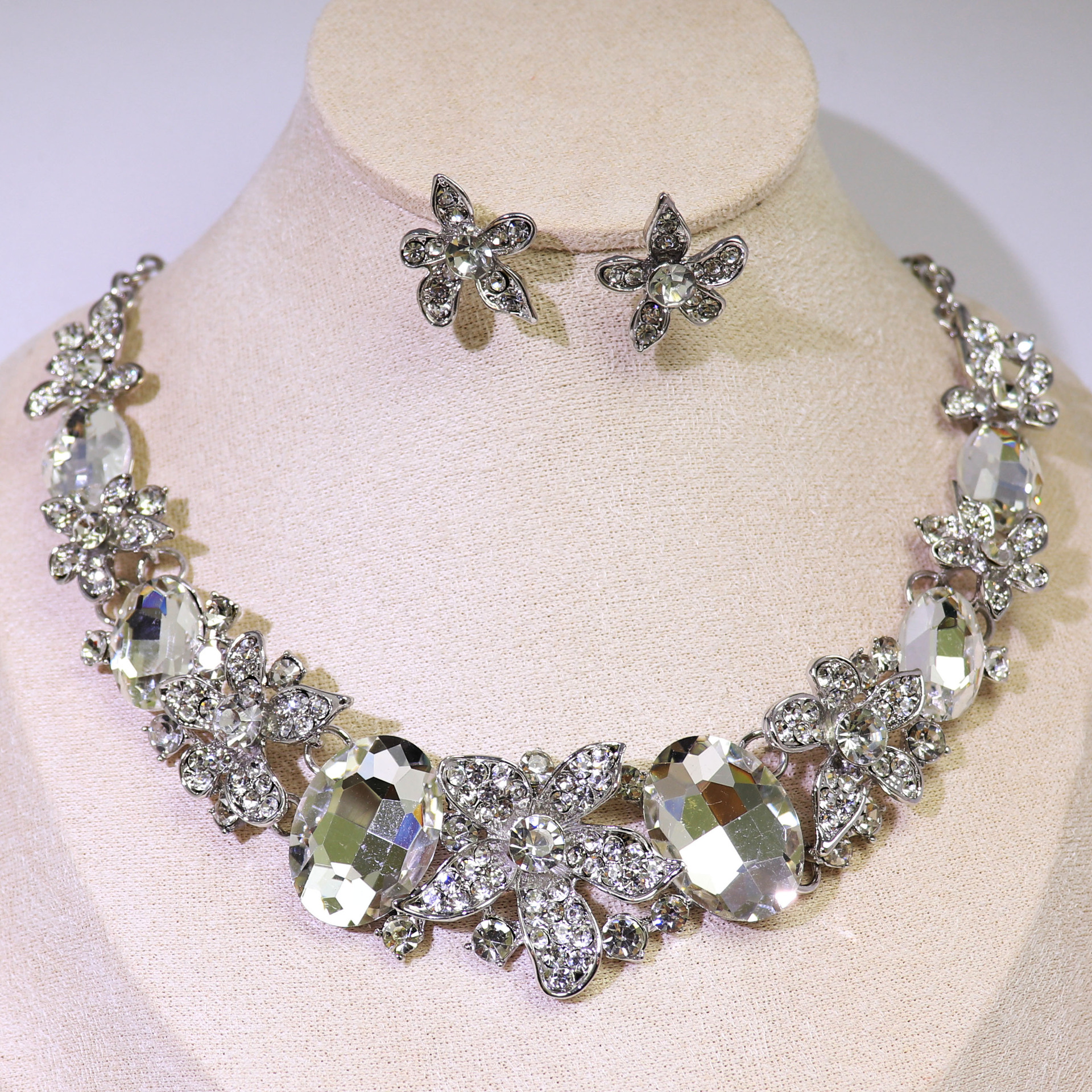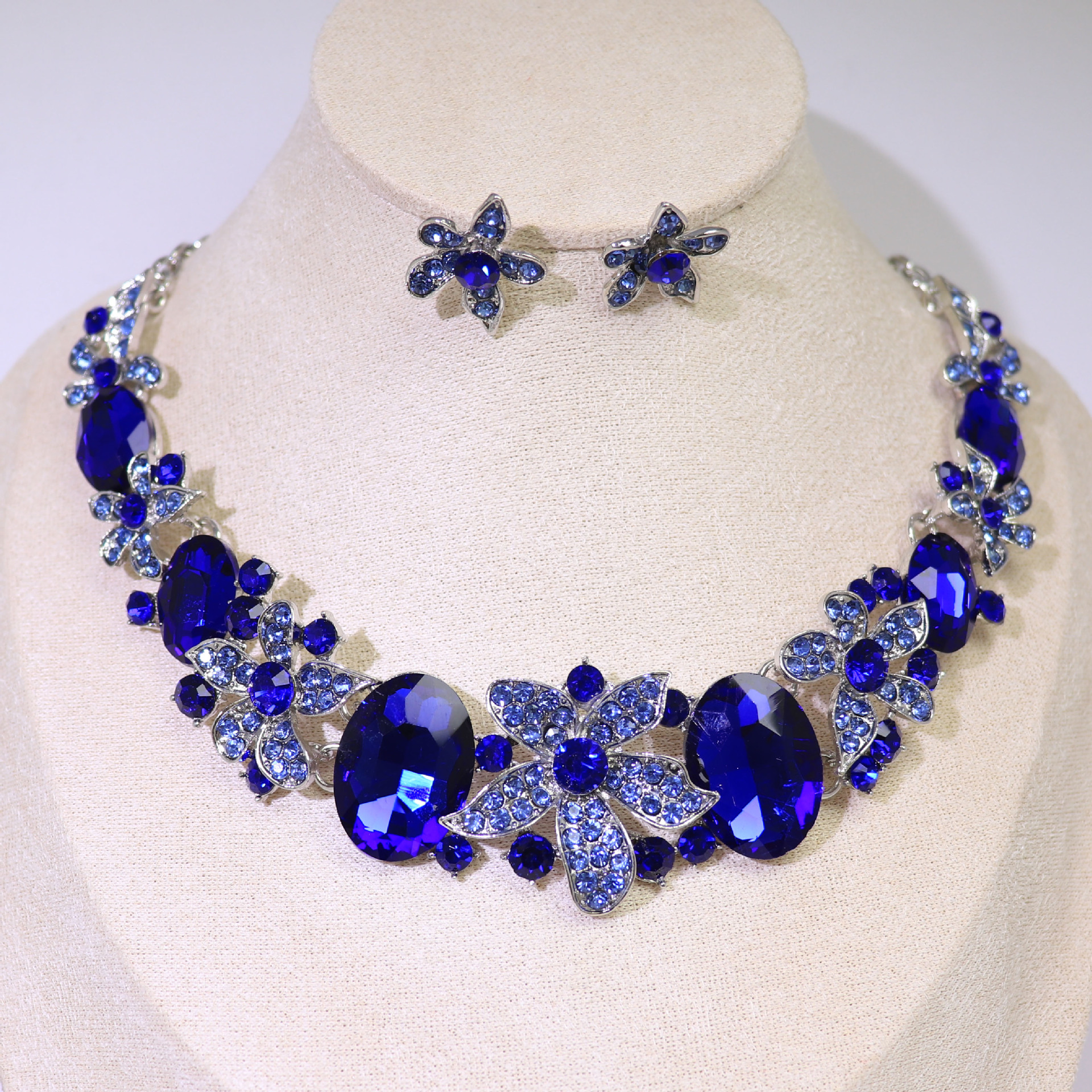 | nameOriginal | Europe and the United States new cross-border foreign trade goods earrings chain 2-piece crystal glass alloy dress accessories women's necklace |