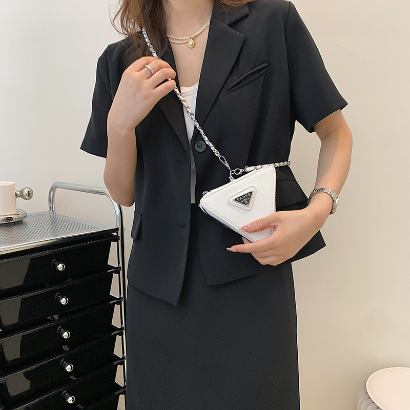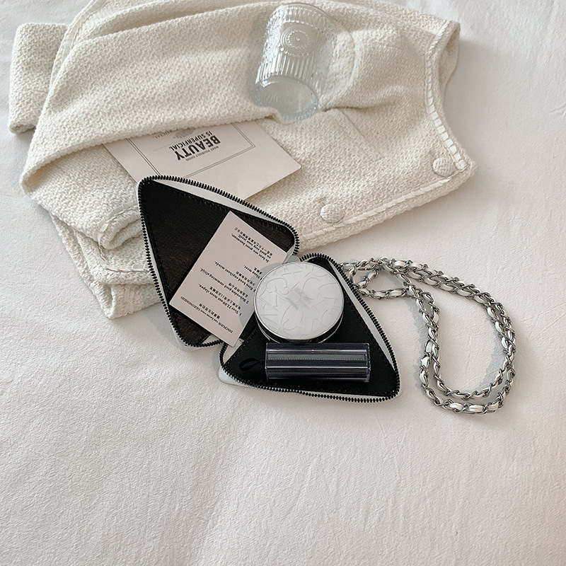 Europe and the United States P home mirror mini small triangle bag mini neck lipstick headphones shoulder slung chain Women’s waist bag