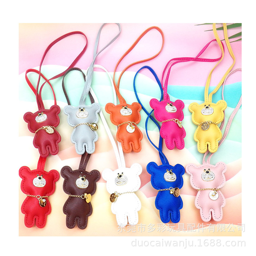 | nameOriginal | Europe and the United States popular new leather diamond bear hand rope bag pendant pu animal station bear doll mobile phone case accessories leather ornaments |