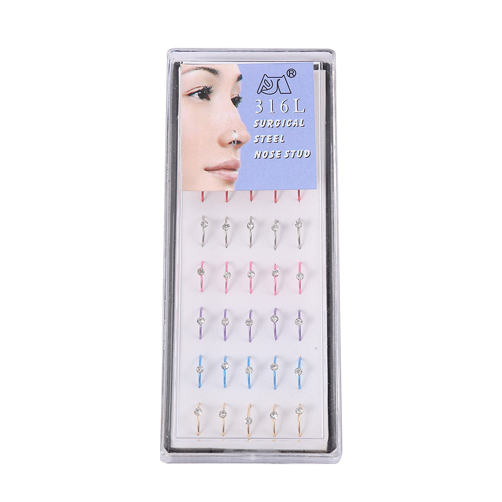 | nameOriginal | Europe and the United States stainless steel nose ring diamond circle 40 sets of gold and silver color personality nose nail puncture jewelry cross-border |