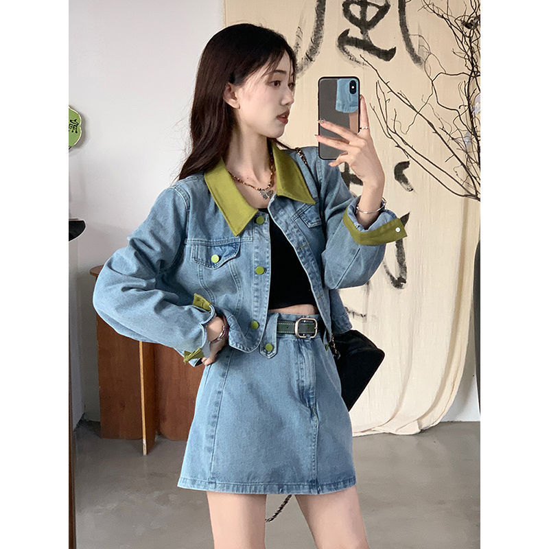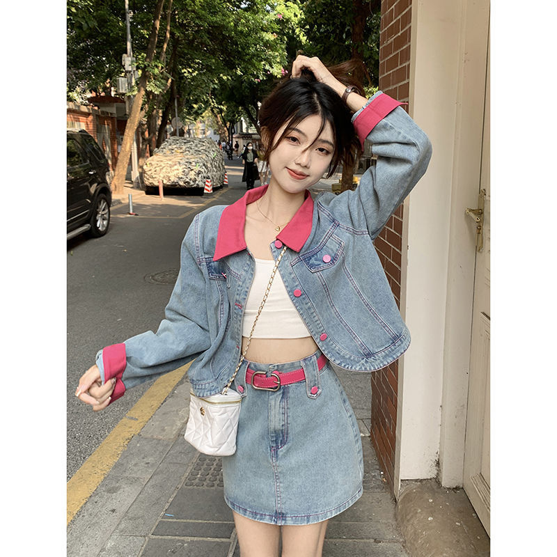 | nameOriginal | European 2024 New Fashion suit women's clothing high-grade Spring short Denim coat high waist skirt for women |