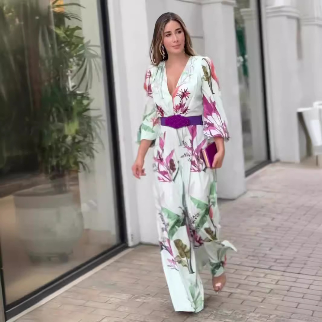 | nameOriginal | European and American 2024 Summer Printed Breathable Casual Plus Belt Decorative Pants Female Niche Design suit |