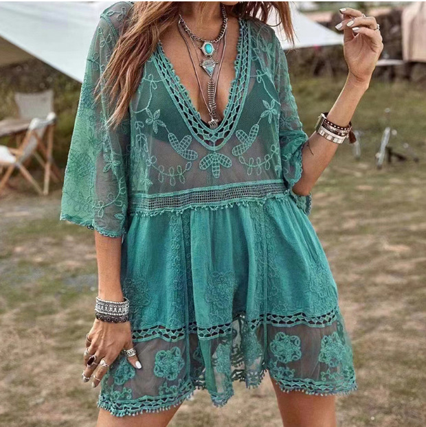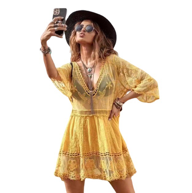| nameOriginal | European and American Amazon Cross-border Sexy Lace Hollow Sunscreen Seaside Bikini Sunscreen Beach Blouse |