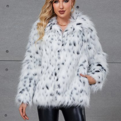 | nameOriginal | European and American Amazon hot-selling faux fur coat women's bobcat leopard fur warm lapel faux fox fur coat |