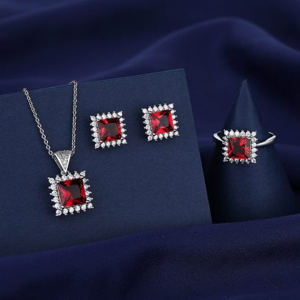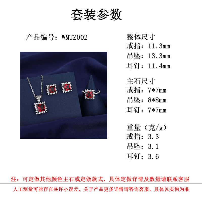 | nameOriginal | European and American Amazon independent station square Ruby three-piece suit cross-border e-commerce ring necklace earrings wholesale |