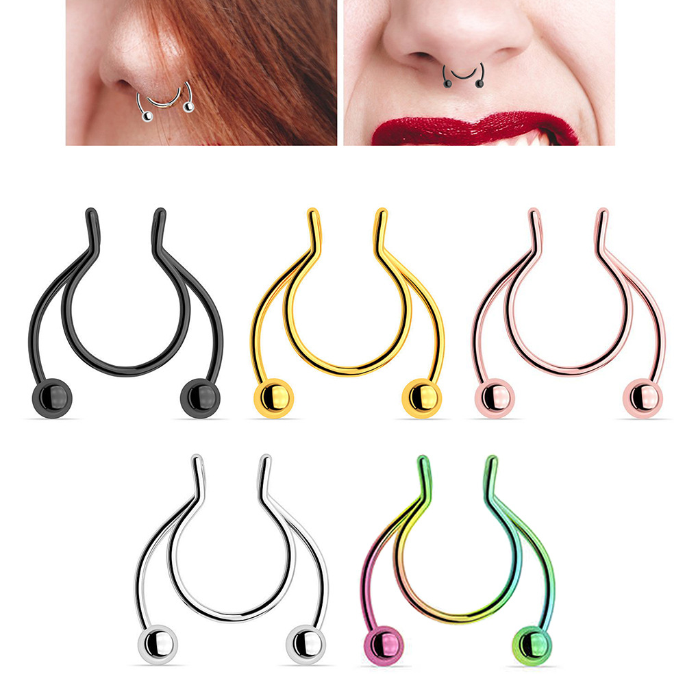 European and American antler nose ring nose clip U-shaped stainless steel nose ring C- shaped fake nose ring titanium steel nose ring nose nail wholesale cross-border