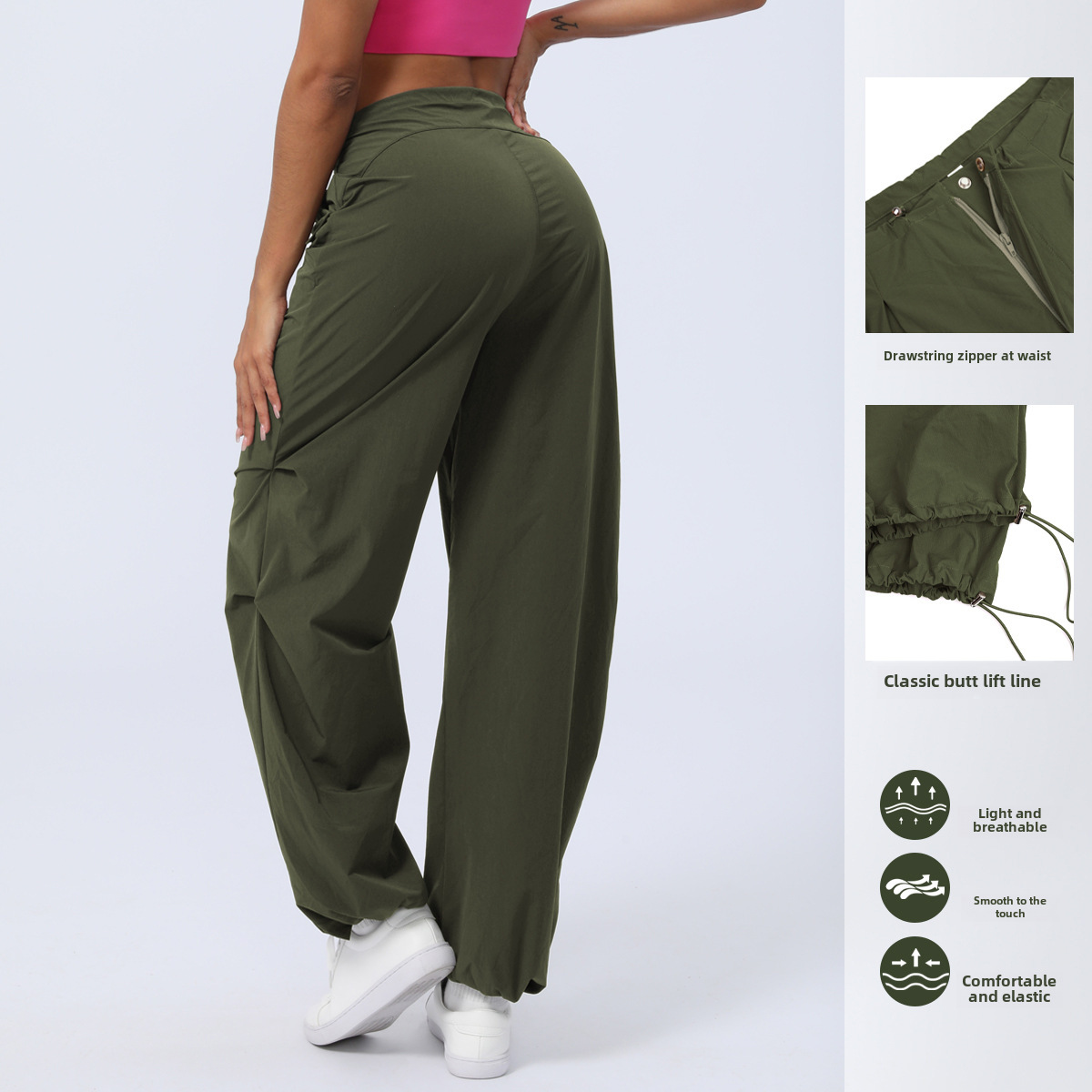| nameOriginal | European and American autumn and winter high waist quick-drying sports trousers women's ankle-tied pants American loose straight umbrella pants casual overalls |