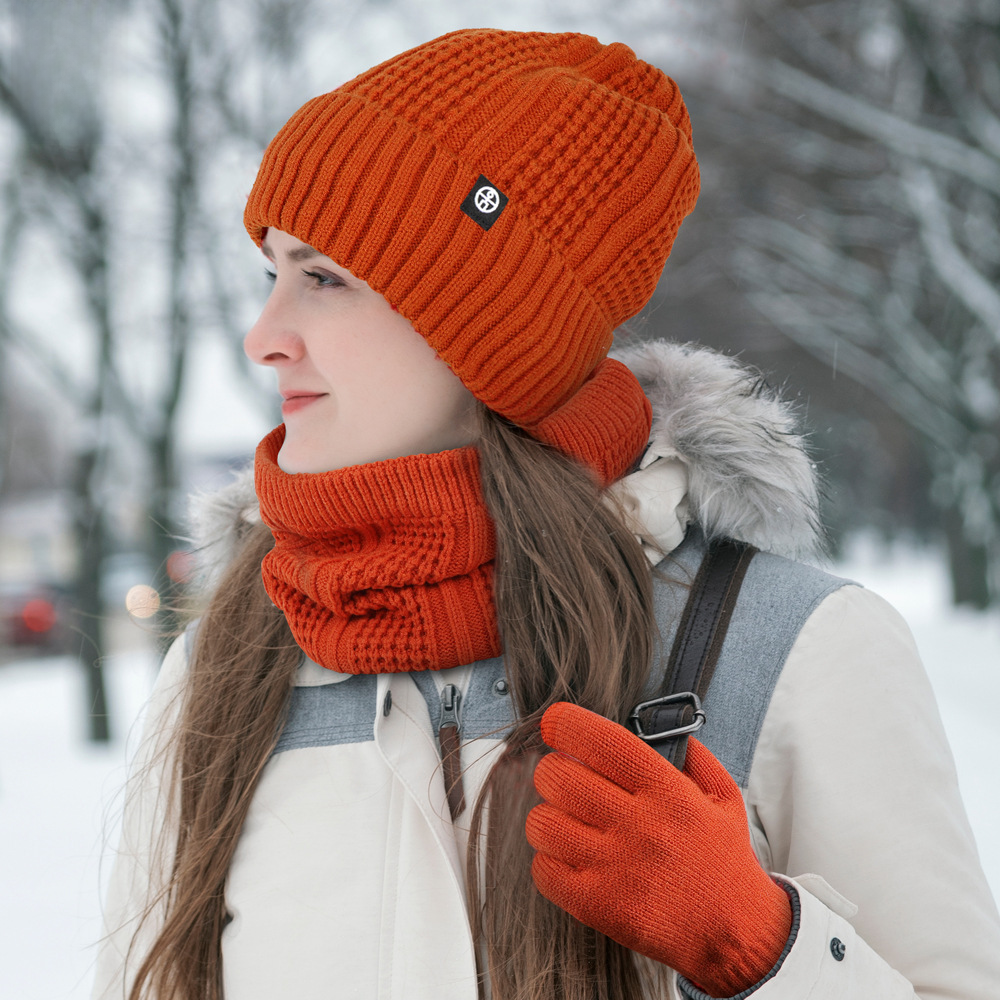 | nameOriginal | European and American autumn and winter knitted hat scarf gloves three-piece set outdoor windproof wool warm fleece-lined scarf three-piece set |