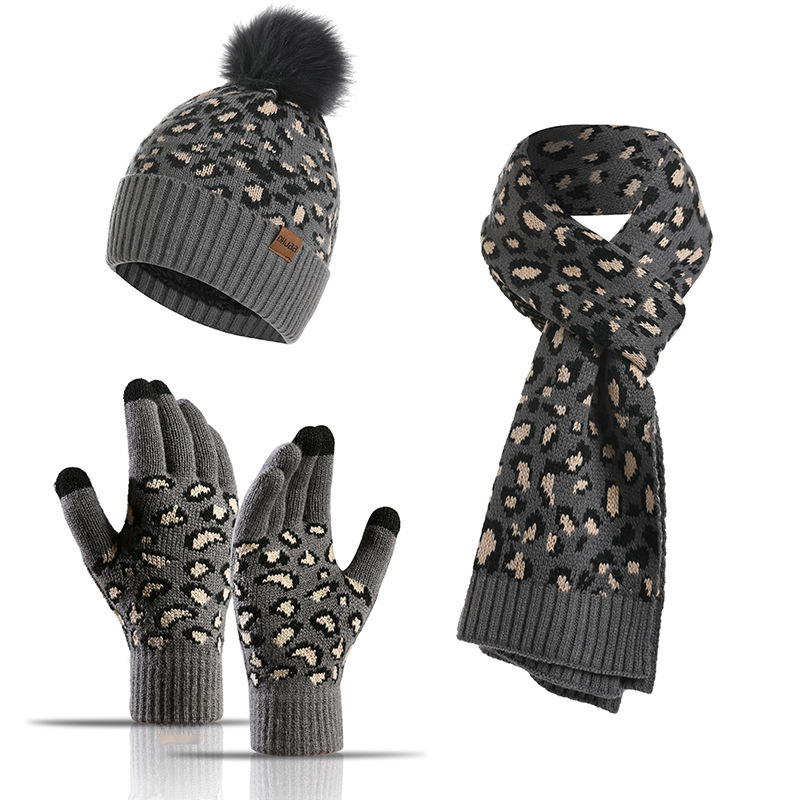 | nameOriginal | European and American autumn and winter knitted hat set Amazon new women's leopard print warm wool hat scarf gloves three-piece set |