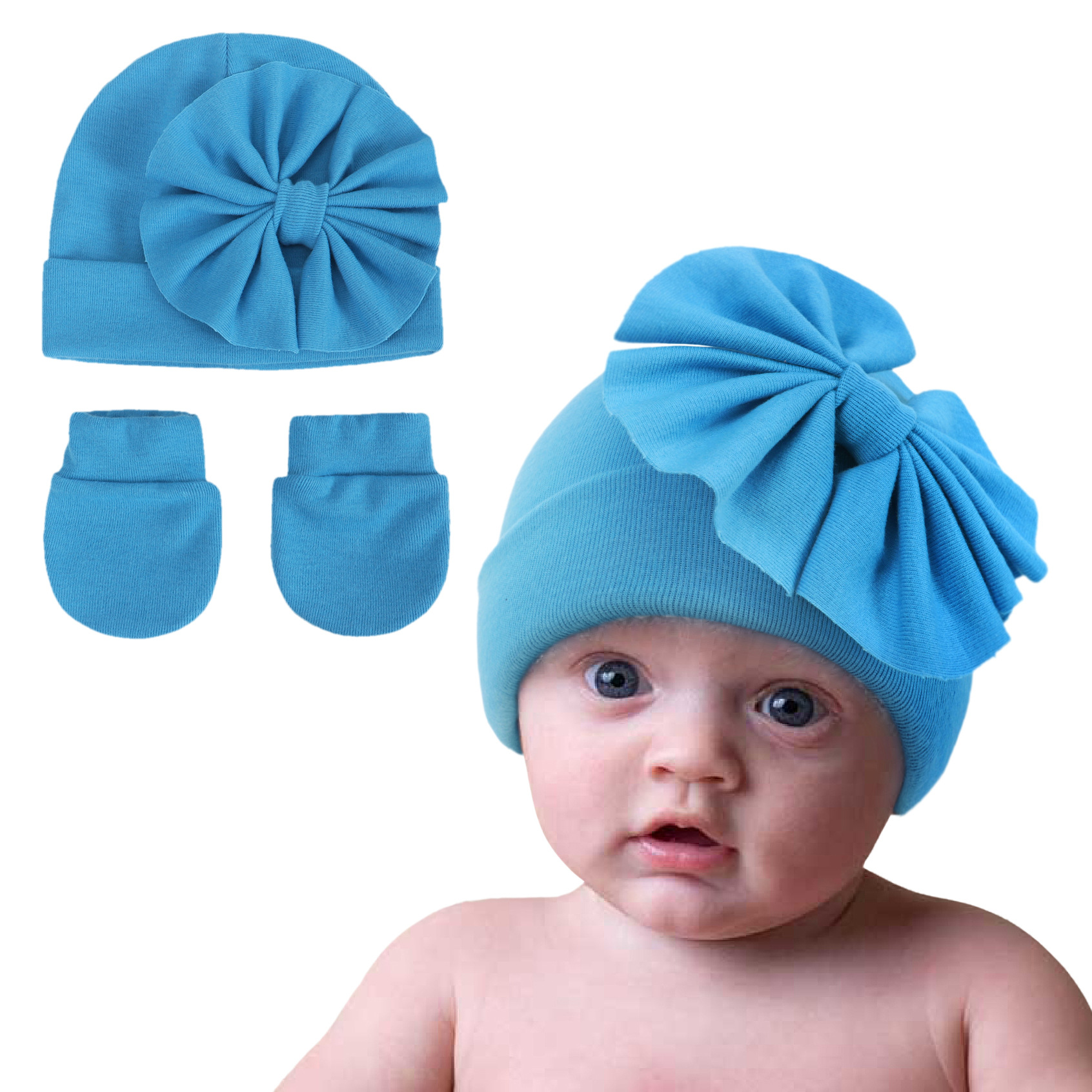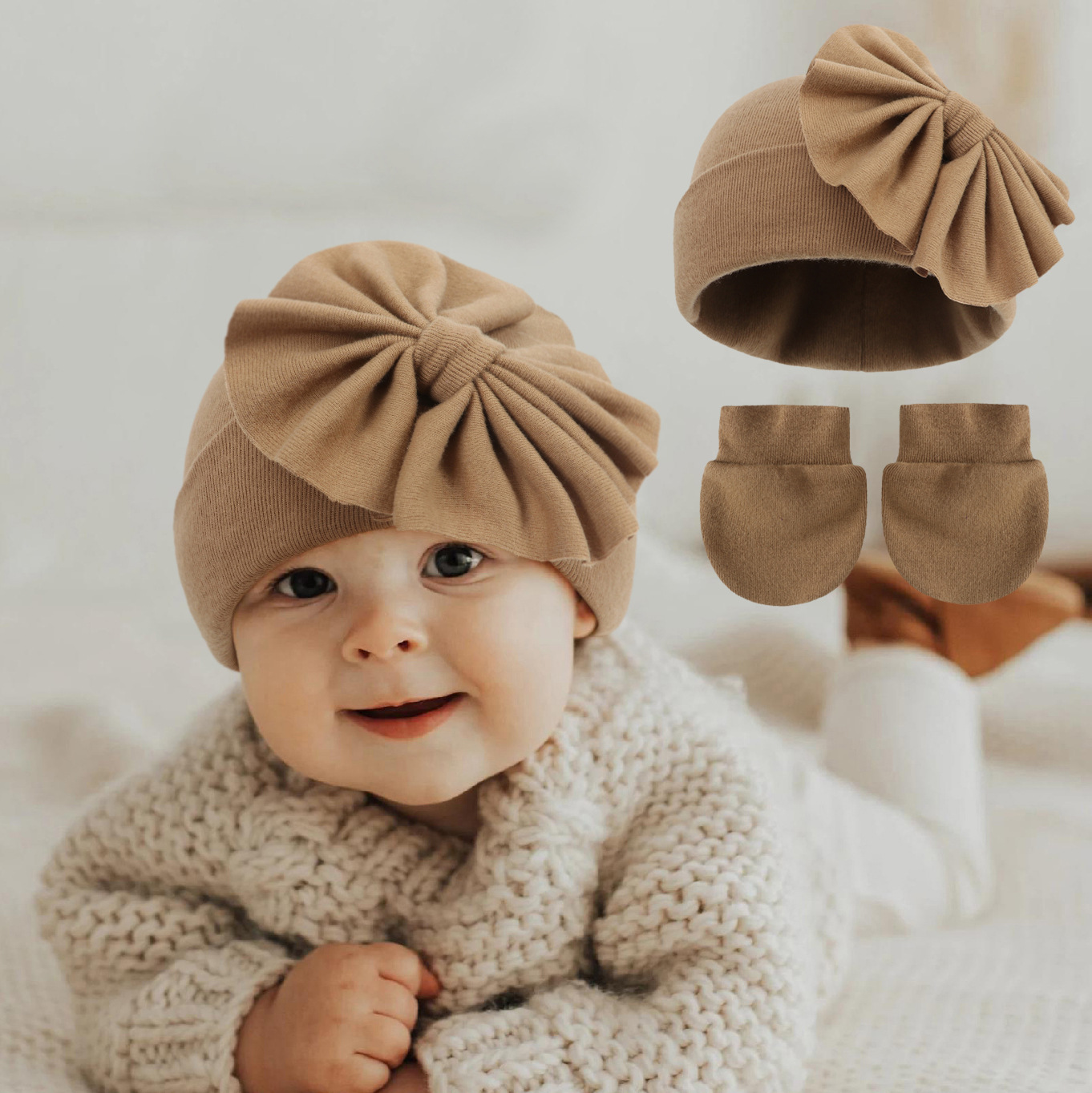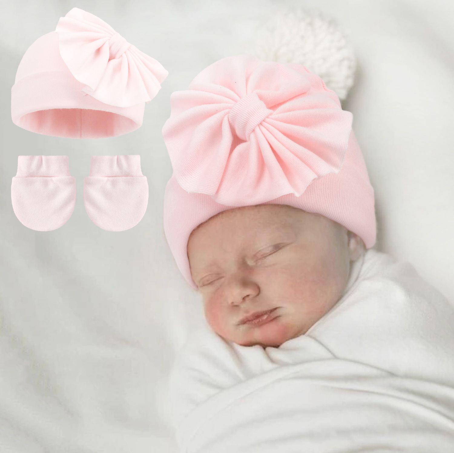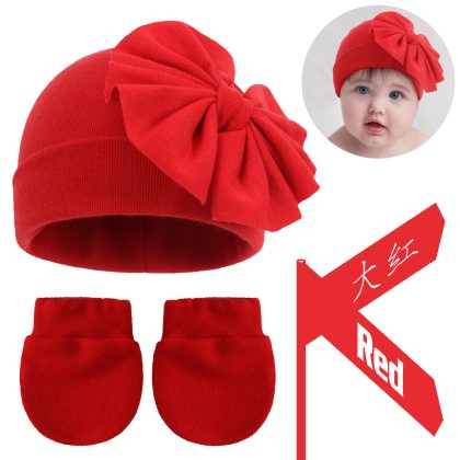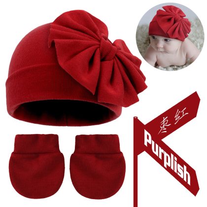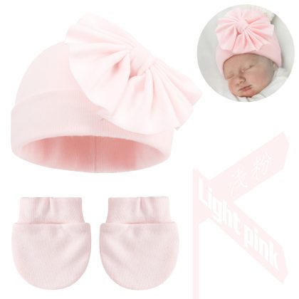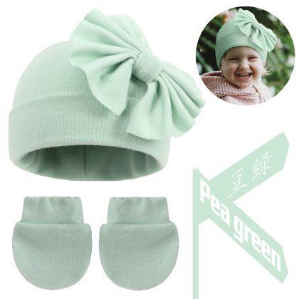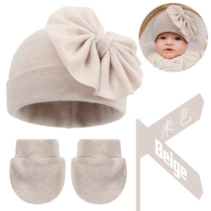 | nameOriginal | European and American autumn and winter New 0-6 months bow sanding gloves hat set newborn gloves anti-scratch |