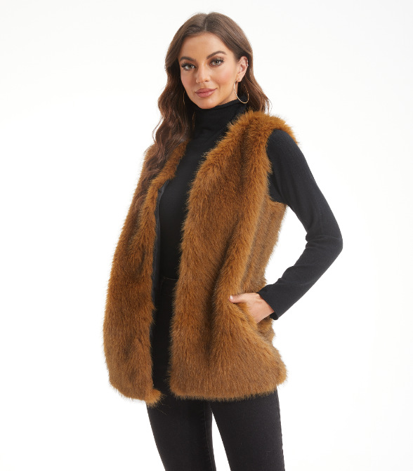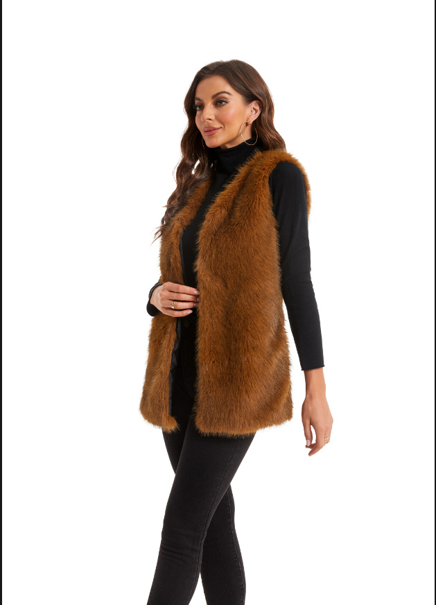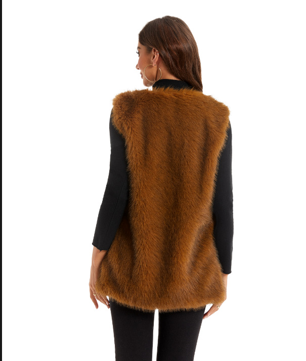 European and American autumn and winter New faux fur vest women’s coat fox fur vest mid-length coat sleeveless vest