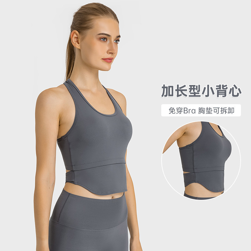 | nameOriginal | European and American autumn and winter New nude yoga clothes with chest pad slim-fit short U-lead walking fitness sports vest for women |