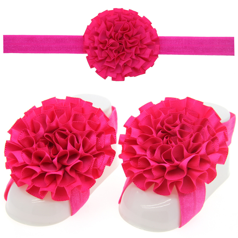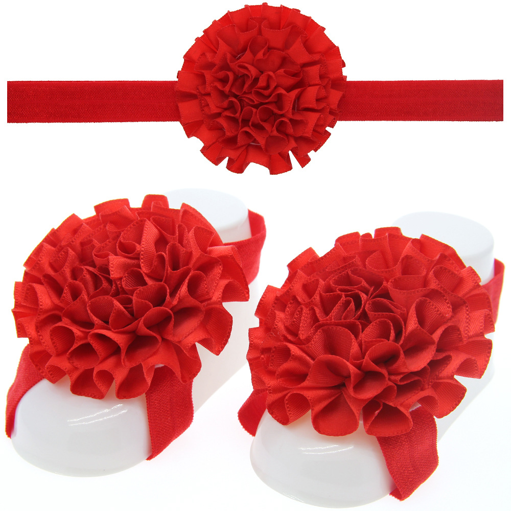 European and American baby headdress foot flower set pleated flower hair strap foot strap wholesale baby curly toddler foot strap solid color
