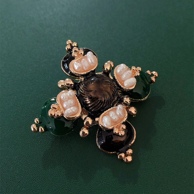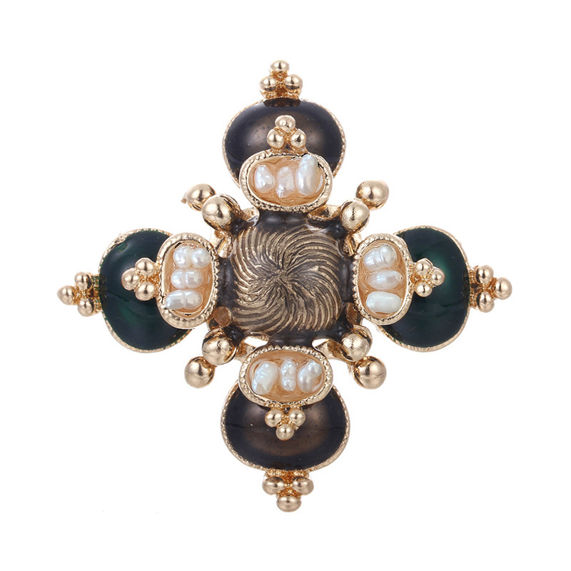 European and American Baroque Cross Freshwater Pearl Brooch Coat Suit Corsage Pin Atmospheric Enamel Accessories