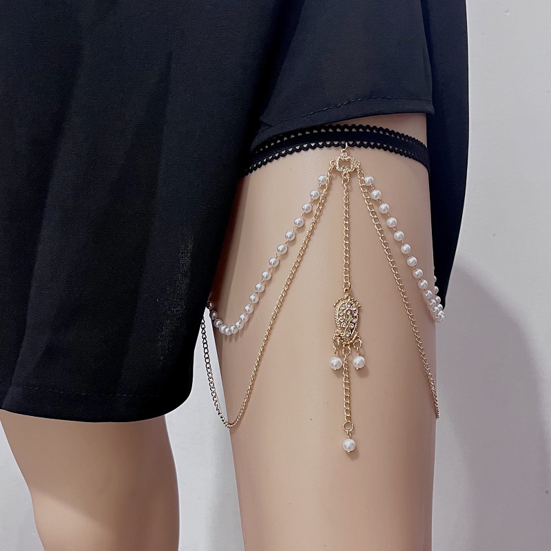 | nameOriginal | European and American beach stretch multi-layer pearl thigh chain Women's trendy rhinestone leg chain tassel chain geometric body chain |