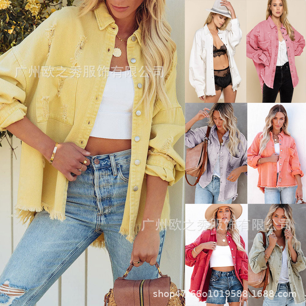 | nameOriginal | European and American Bohemian Old Coat Ripped Loose Denim Jacket Amazon Coat Independent Station New Multicolor |
