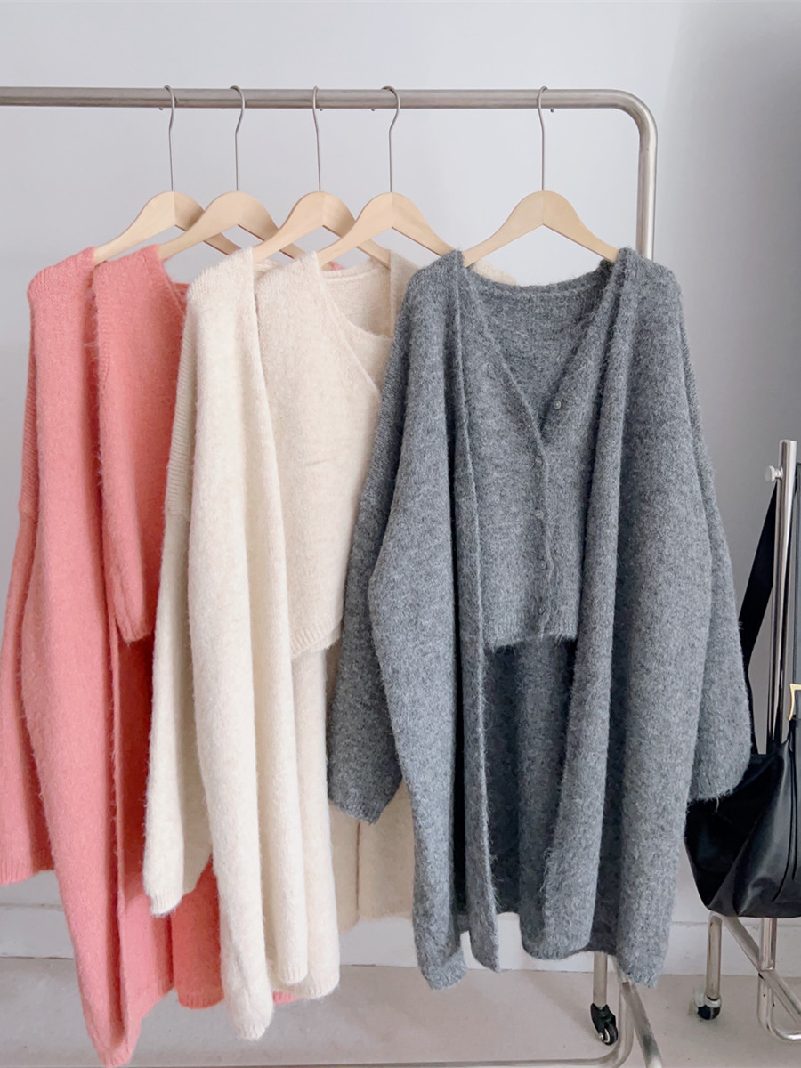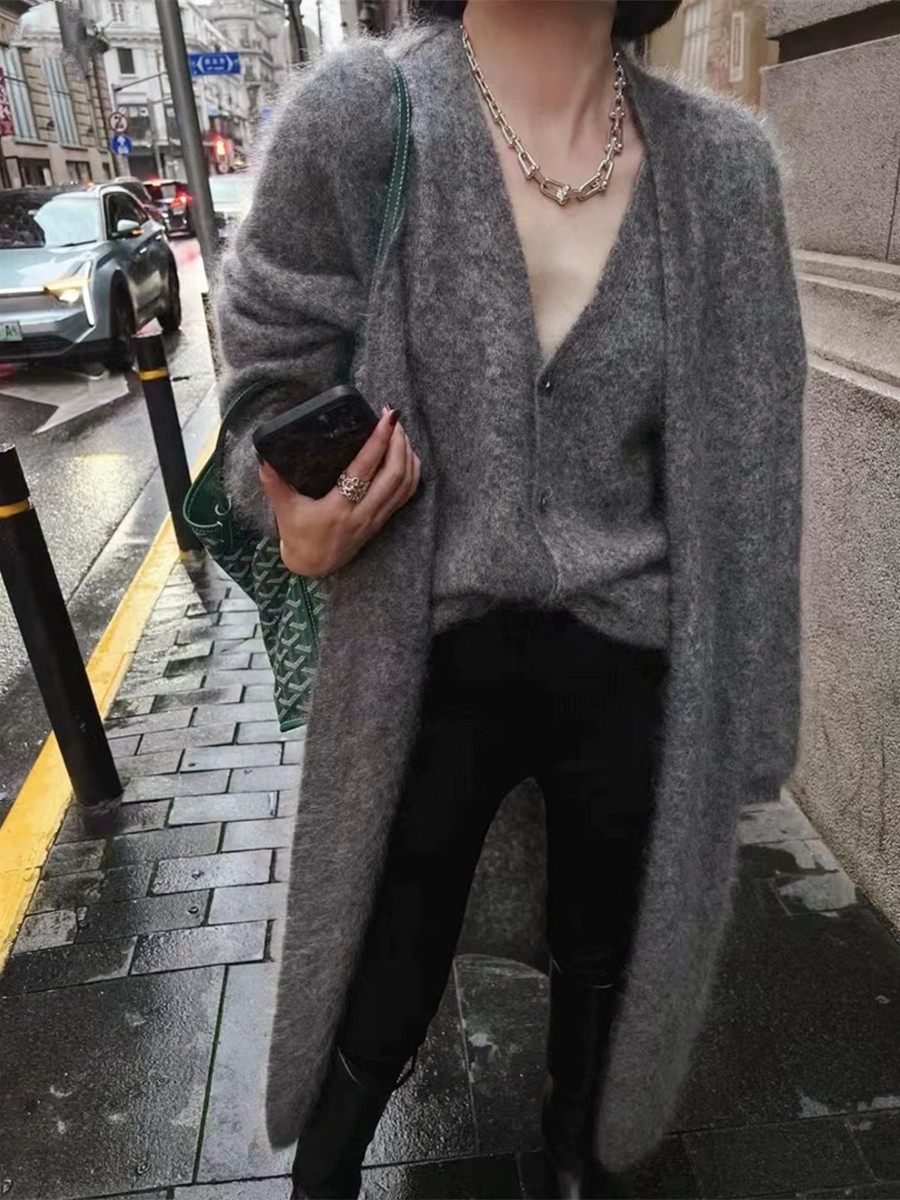 European and American British style wool knitted cardigan women’s two-piece set 2023 new autumn and winter soft glutinous long coat coat fashion