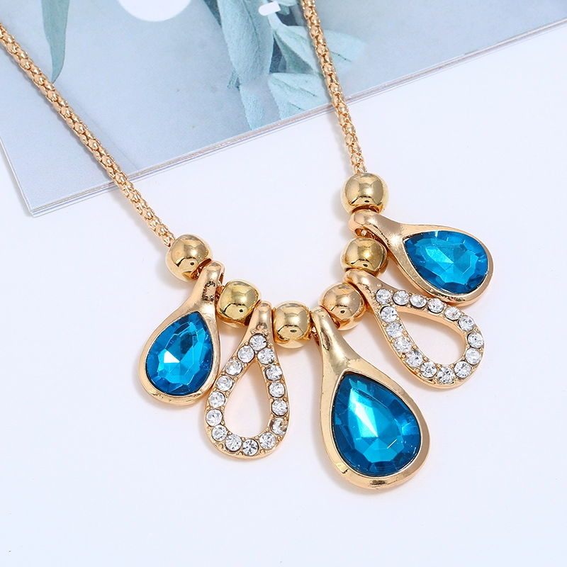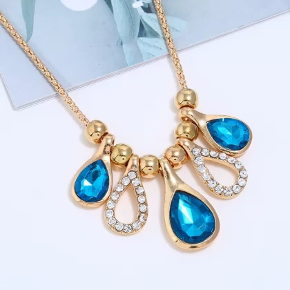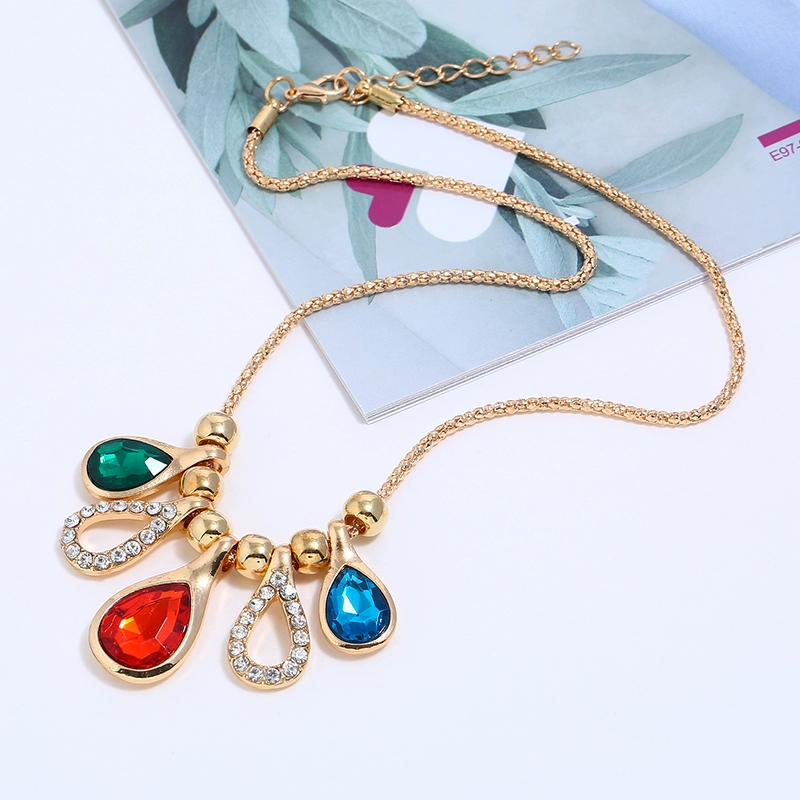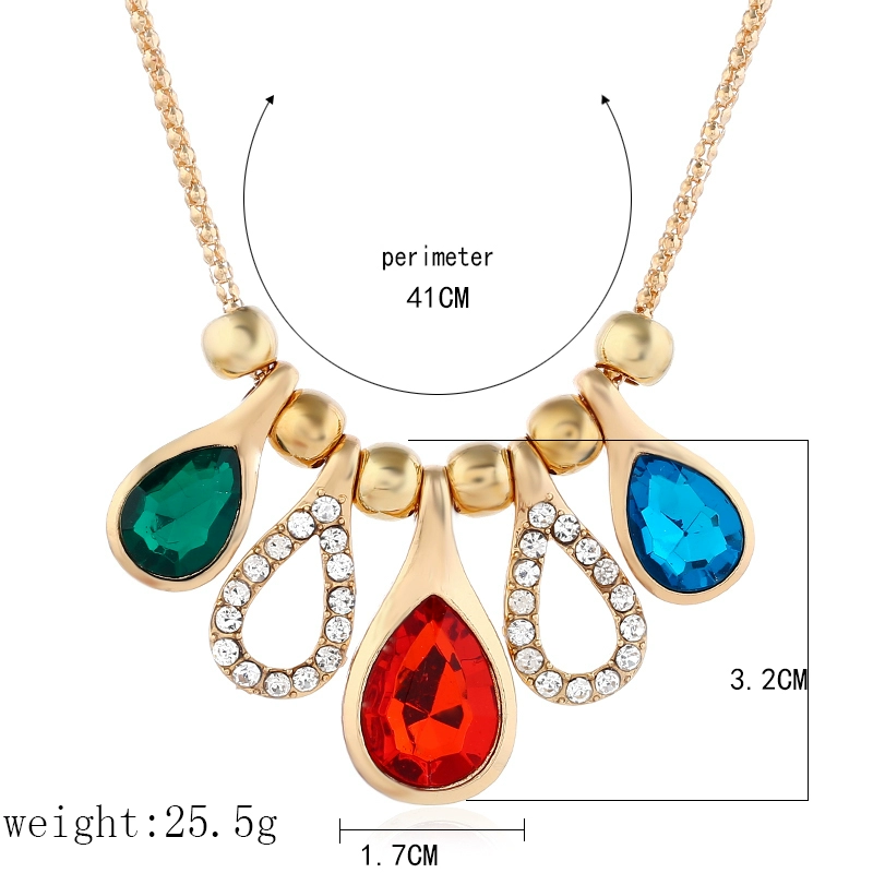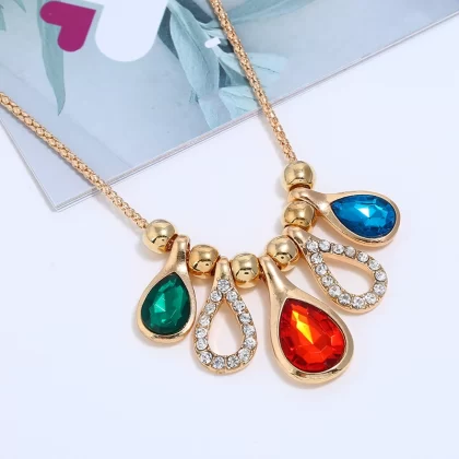 | nameOriginal | European and American charm necklaces Bohemian retro colorful rhinestone crystal drop-shaped pendant sweater chain necklace |